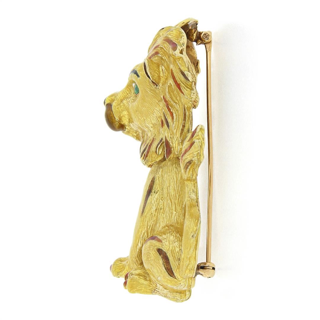 A vintage solid 18k yellow gold and enamel work large lion brooch. Measures 59.7x40.3mm and weighs a total of 48.80 grams.