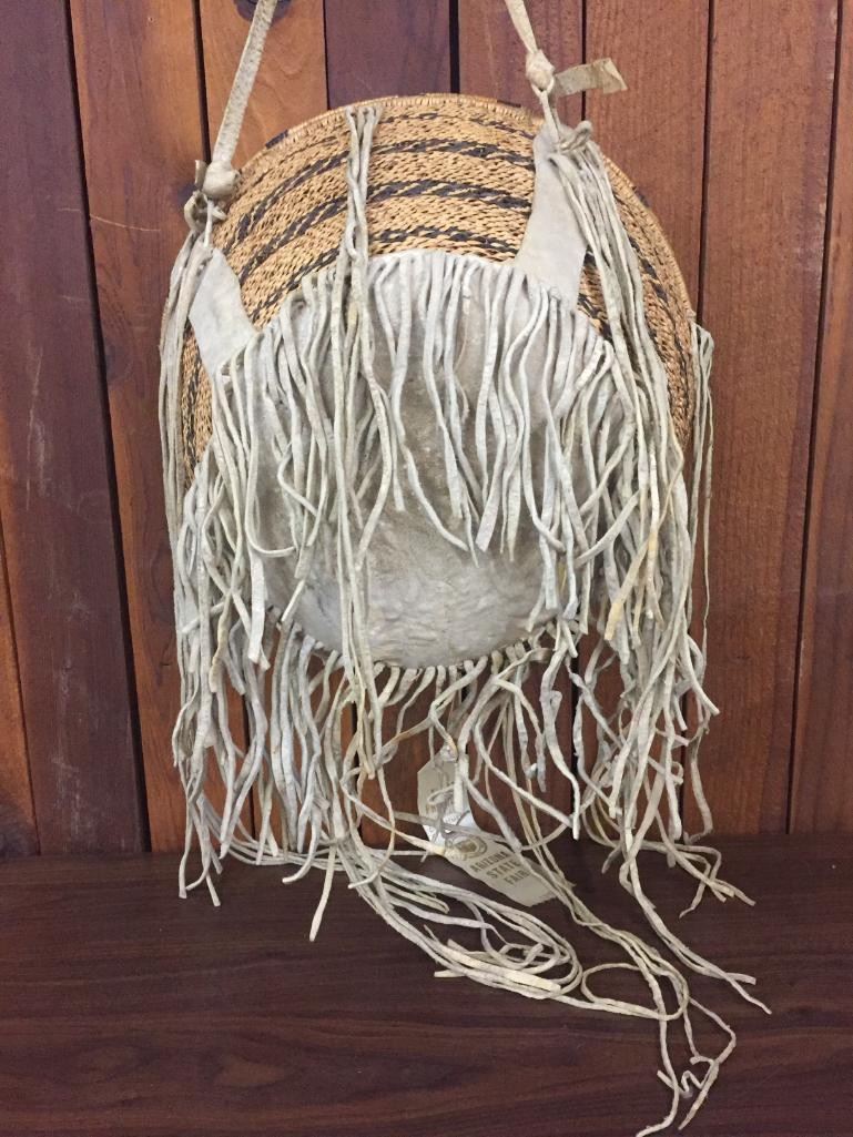 Presented for sale in this lot is a large vintage Apache burden basket. This is a nicely made basket with a beautiful pattern and leather fringe. It displays well. Maker: Unknown Apache weaver. Approx. Age: Vintage. Size: 15-1/2 inches wide X 12 inches deep. Condition: Good for its age, normal wear expected. Please look closely at the pictures - they are an important part of our description. Shipping: There will be a $10 handling / packaging fee for shipping this lot. The actual cost of postage will be added on top of that. BUY IT NOW: If you would like to buy this item now without waiting for the auction to end (this option is only available up to 48 hours before the auction starts to close), the “Buy it Now” price is the high estimate of this lot. If you would like to end the auction early and pay the high estimate (plus applicable fees), please contact us by phone or email and reference this lot number.