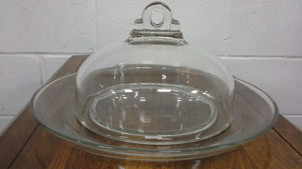 Large Vintage Clear Glass Covered Cheese Plate (12.5" diameter)