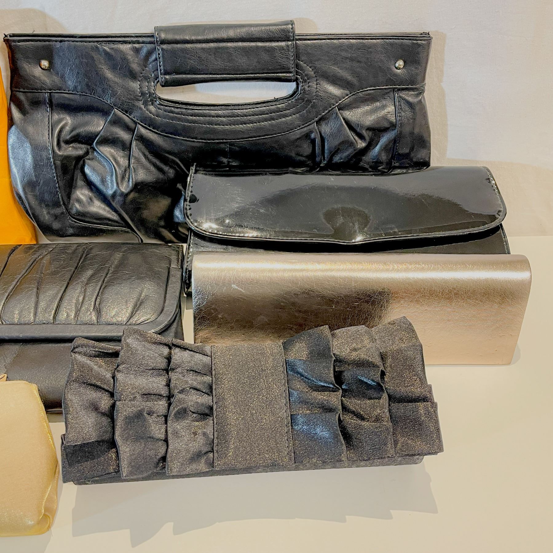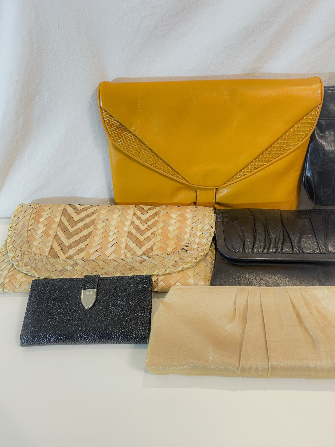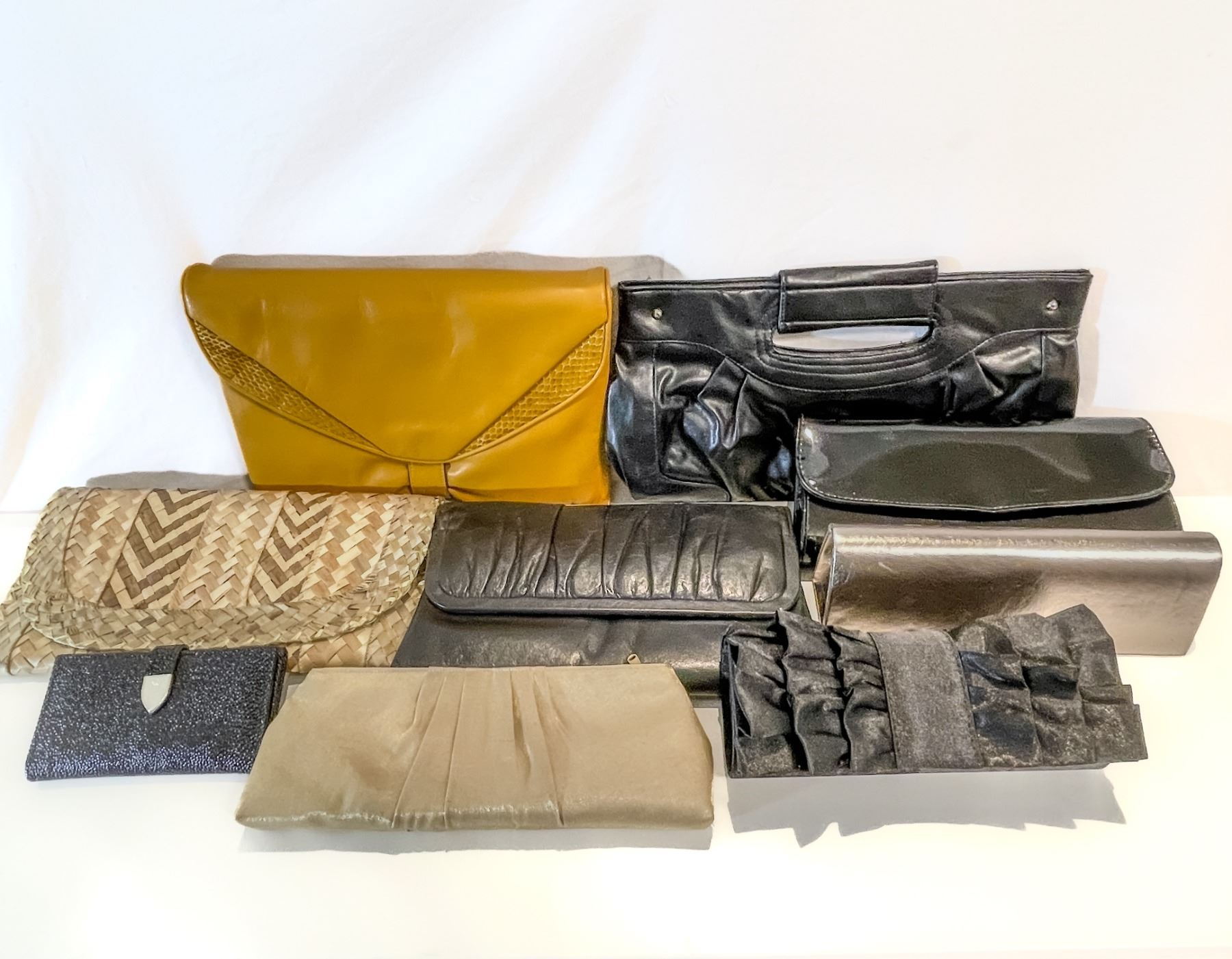 ollection of vintage clutches and wallets spanning from the mid-1960s through the 1990s. Includes a mix materials in a range of styles and colors. Some pieces show light wear consistent with age, while others remain in very good vintage condition. Great lot for collectors, resale, or costume use.