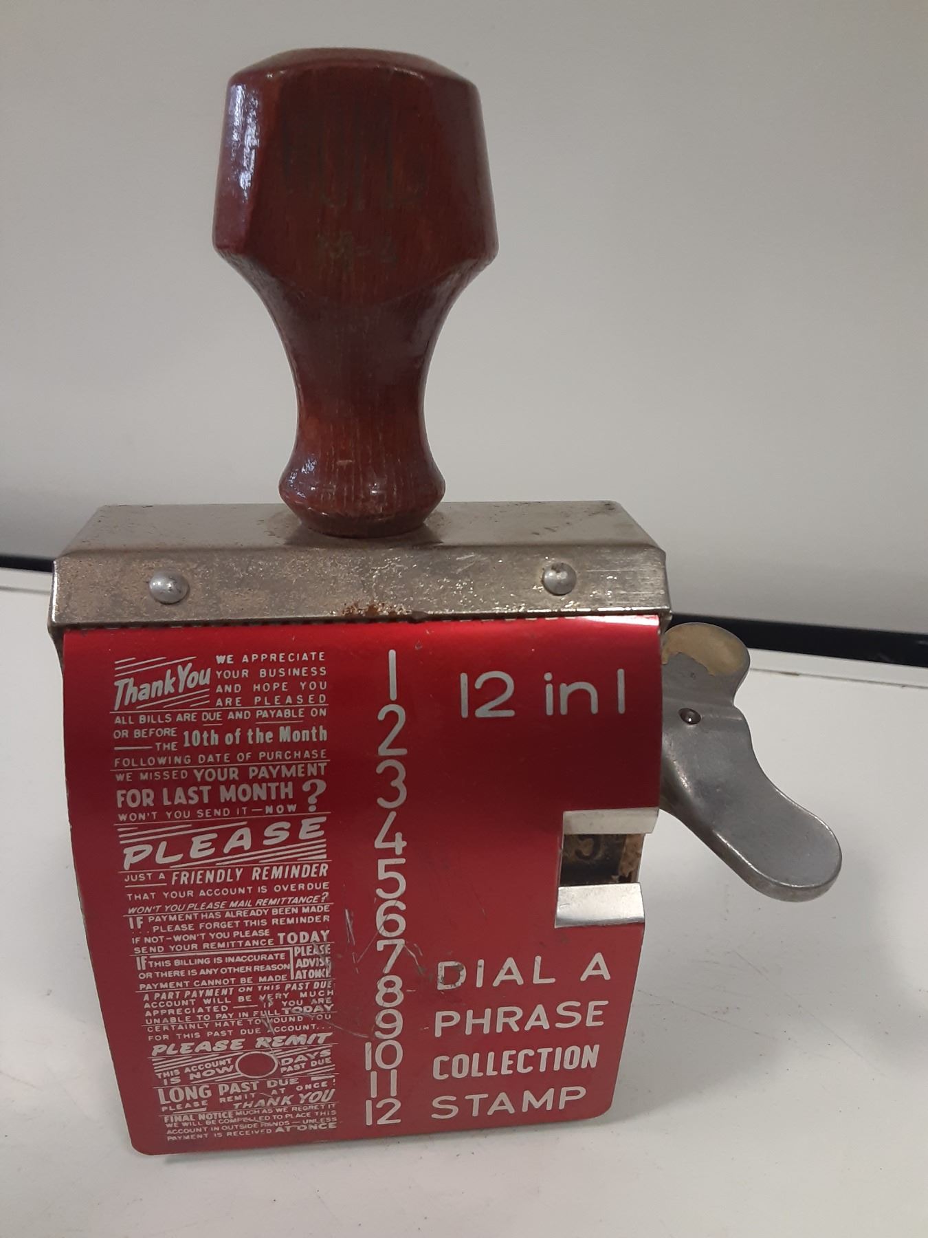 dials to a stamp with each of the shown phrases