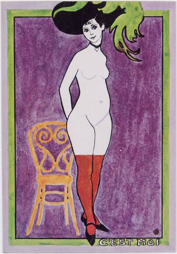 This is a vintage 1960s/1970s postcard with nude art by Betty Brader Ashley titled C'Est Moi. "Pandemonium" printed at the bottom. We believe this is from France. SIZE: 5" x 7". **MORE postcards from 1950s to 1990s (risque, nude, art sci-fi, oddities) in this and future auctions. From the estate of a big collector who traveled the world and had some very scare paper items. Many postcards from small independent underground printers in Germany, Holland, France, UK, etc.