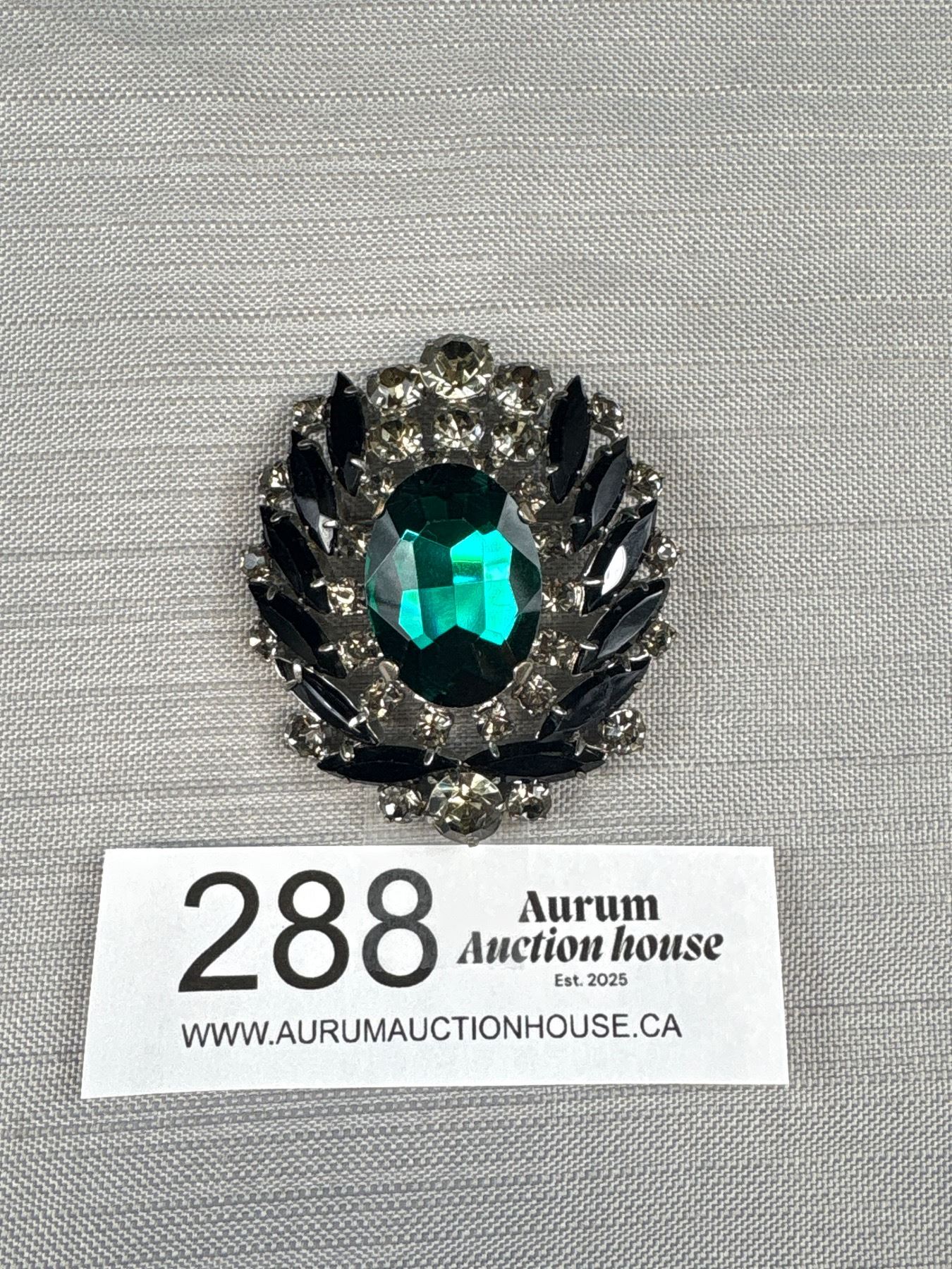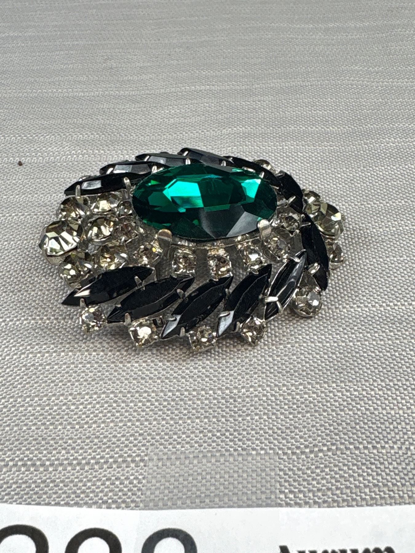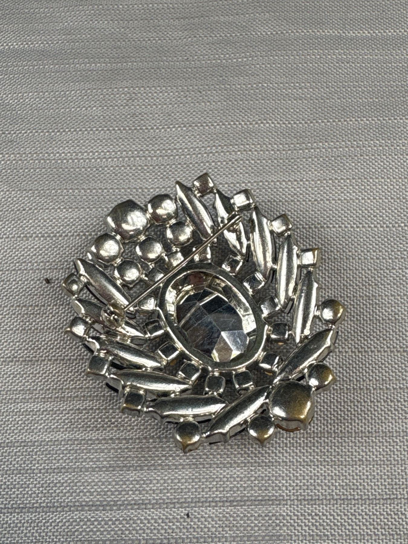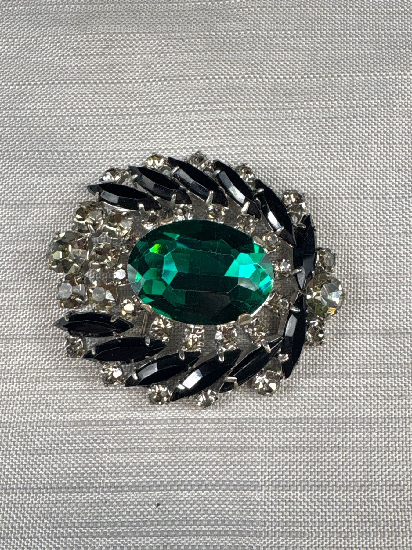 Large Vintage Glass + Rhinestones Brooch