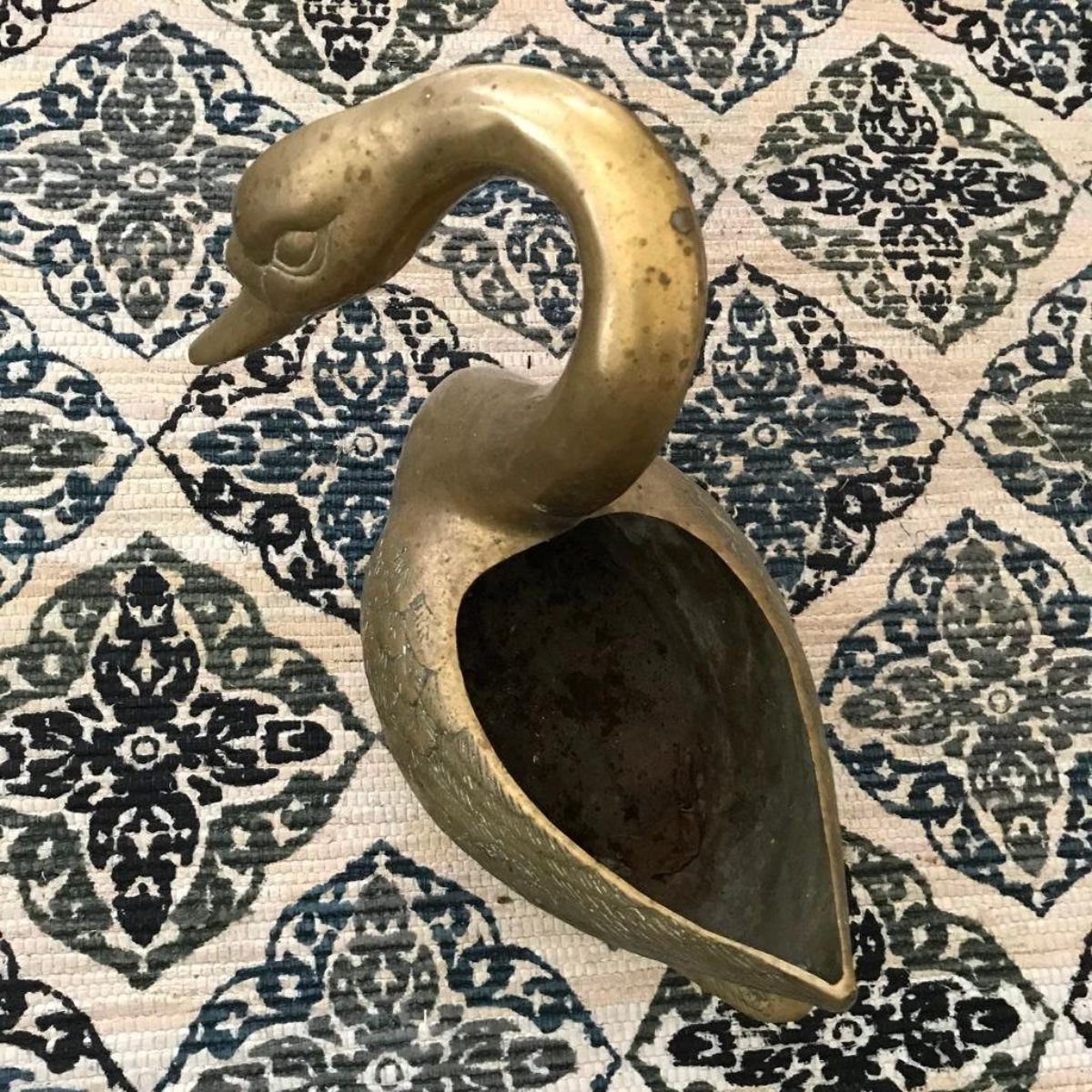 Large vintage Hollywood Regency-style brass swan form planter. 18" X 14" X 9".