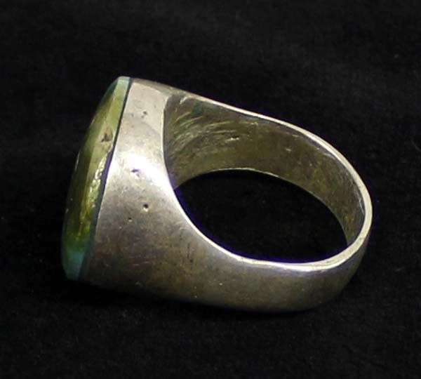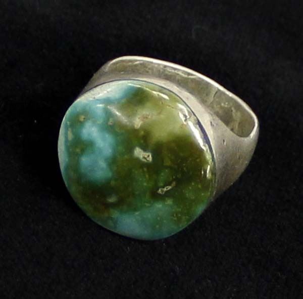 Large Vintage Native American Navajo Silver Ring, size 10.5, nice heavy silver, beautiful turquoise cabochon measuring 7/8''D, ca. 1960s, Little White Dove Trading, 15.69g in total wt.