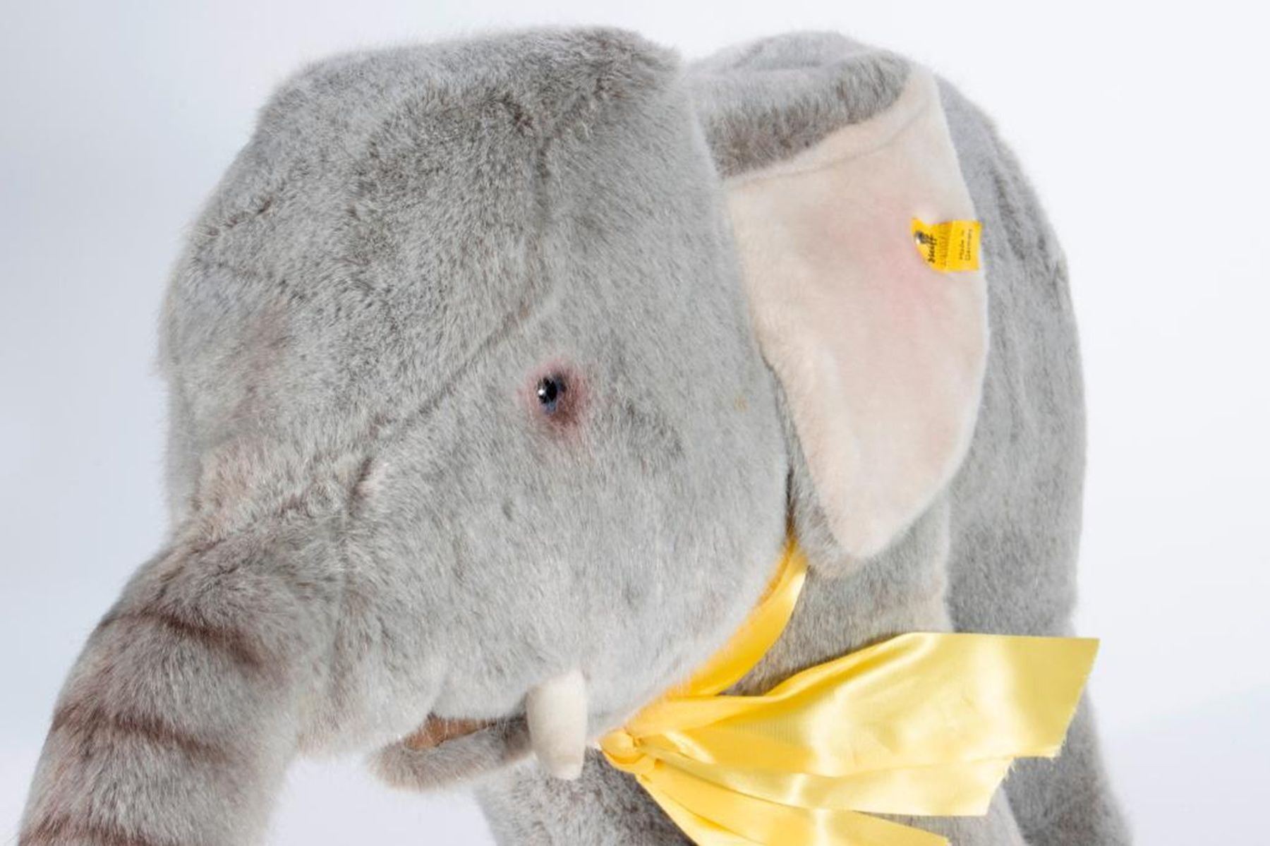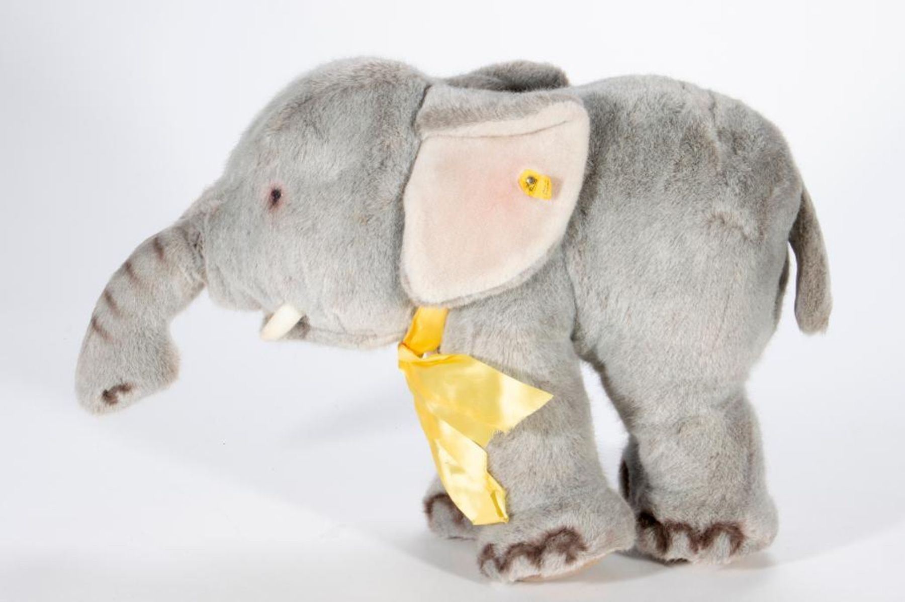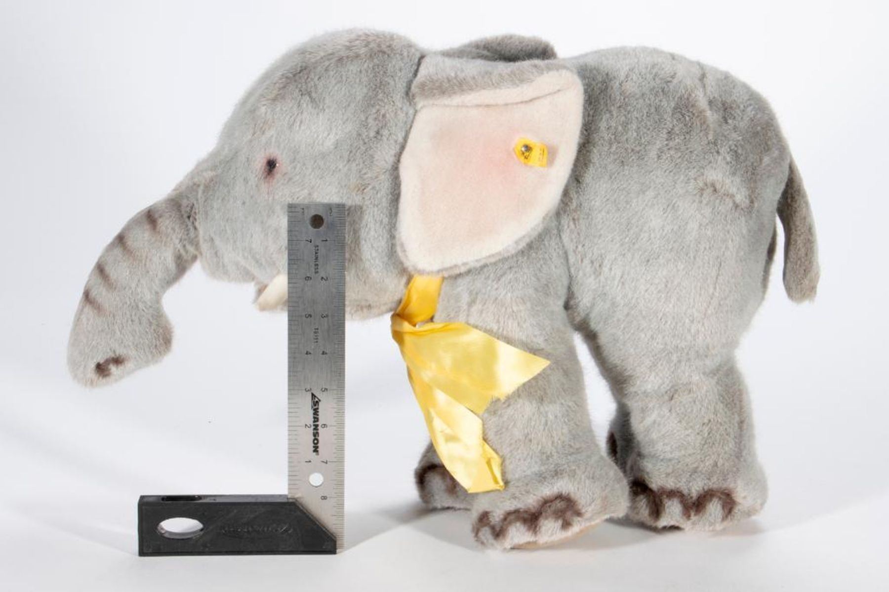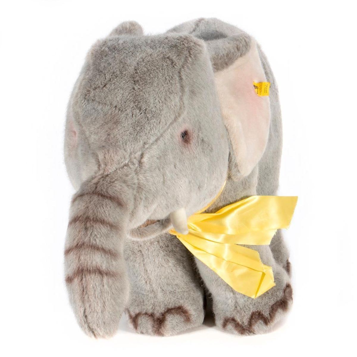 Larger scale vintage Steiff elephant with original tag and button. Largest measurement at 19 inches.