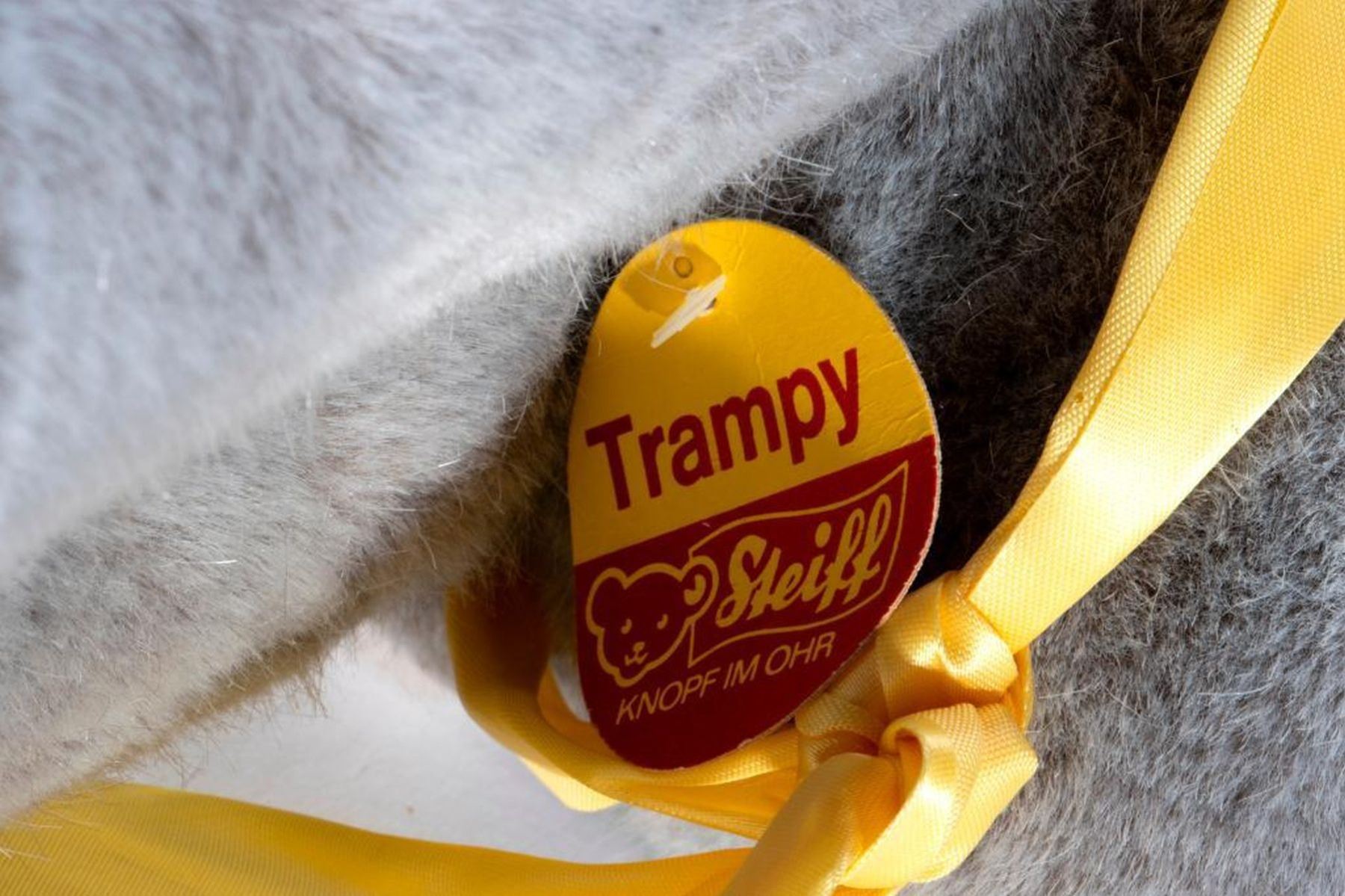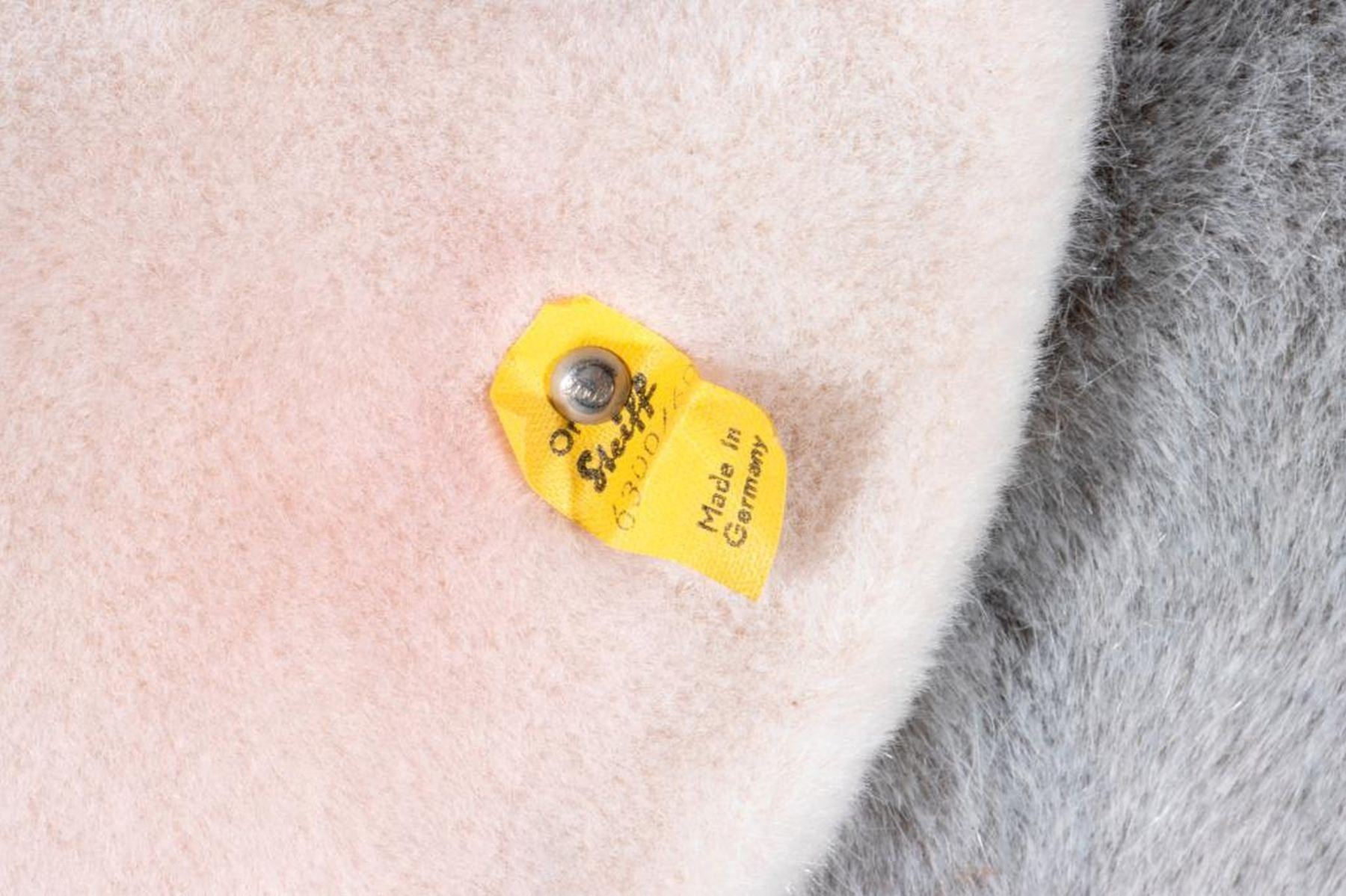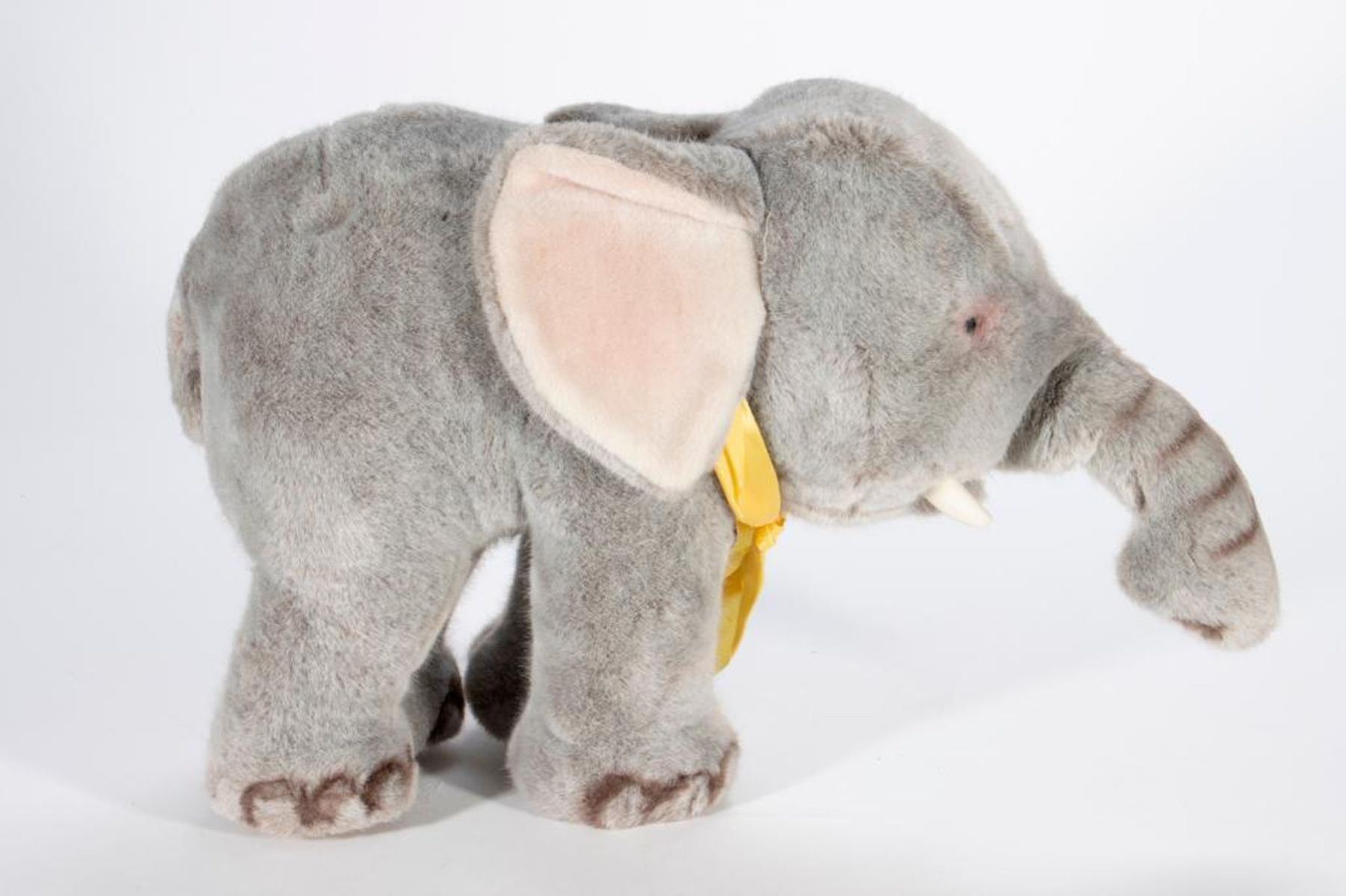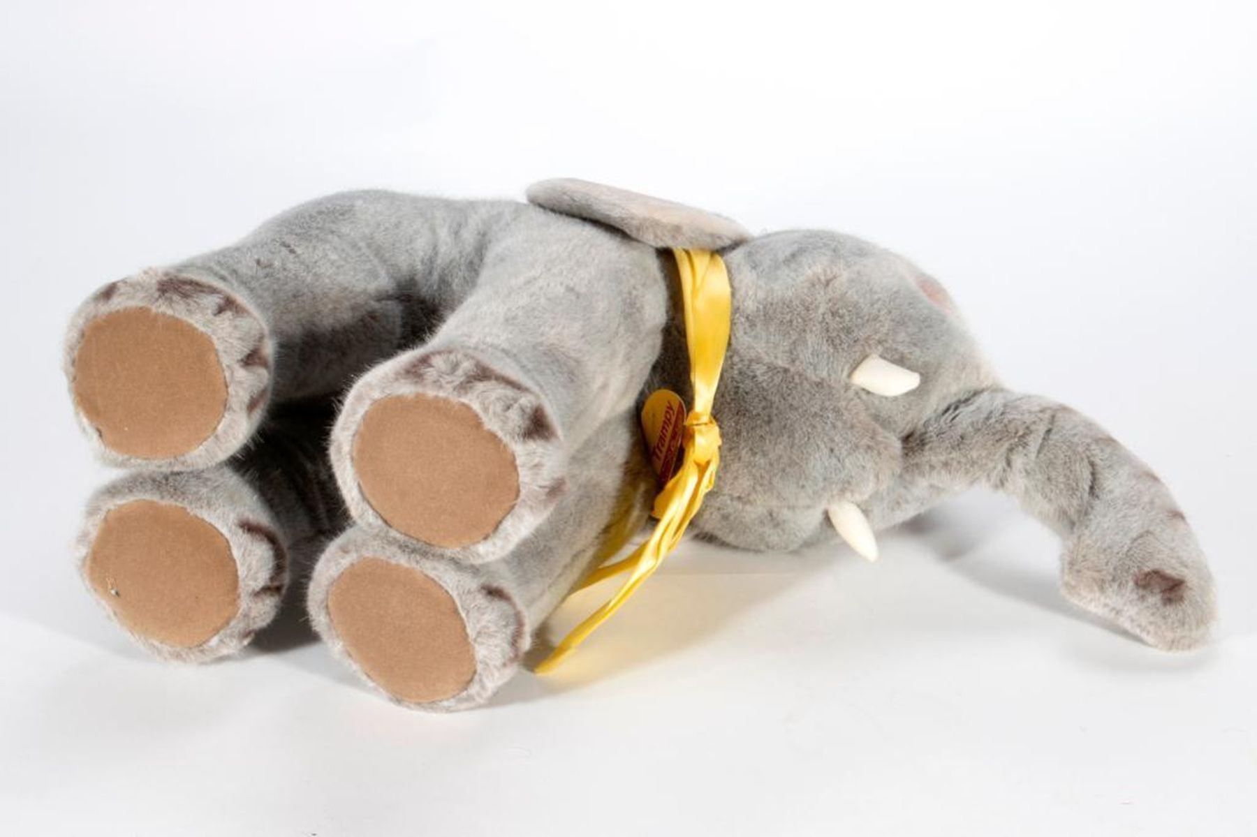 Larger scale vintage Steiff elephant with original tag and button. Largest measurement at 19 inches.