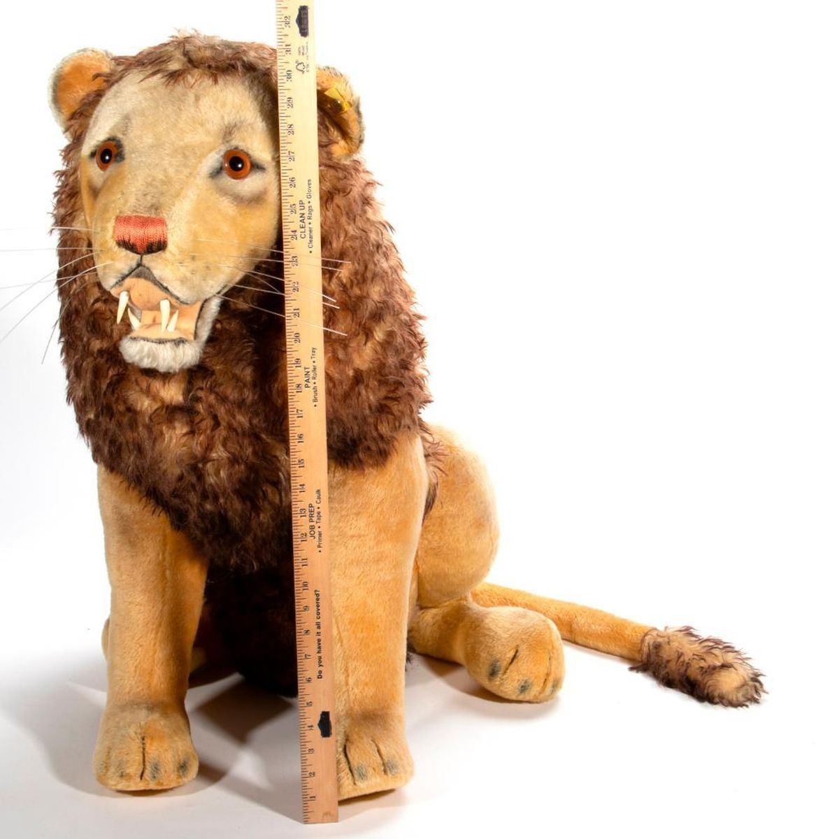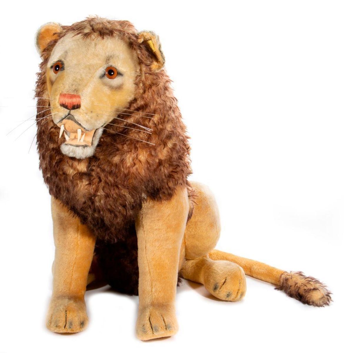 Large scale vintage 1960's Steiff Lion FAO Schwarz store display. Having original tag and button, in good vintage condition. Largest measurement at 31 inches high.