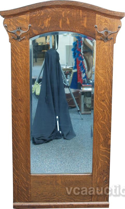 Large Wall Mount Oak Entry-Way Beveled Mirror w/ hat hooks - 27" x 57"