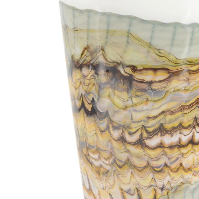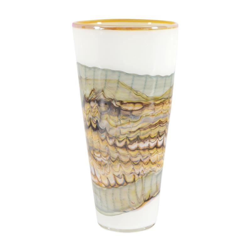 This hand blown "Large White Opal Cone" sculpture combines sand-etched exteriors with an elegant lip accent and is hand signed by GartnerBlade Glass. Measures approx. Measures approx. 6.5" (diameter) x 13" (height); 5 lbs. (weight).