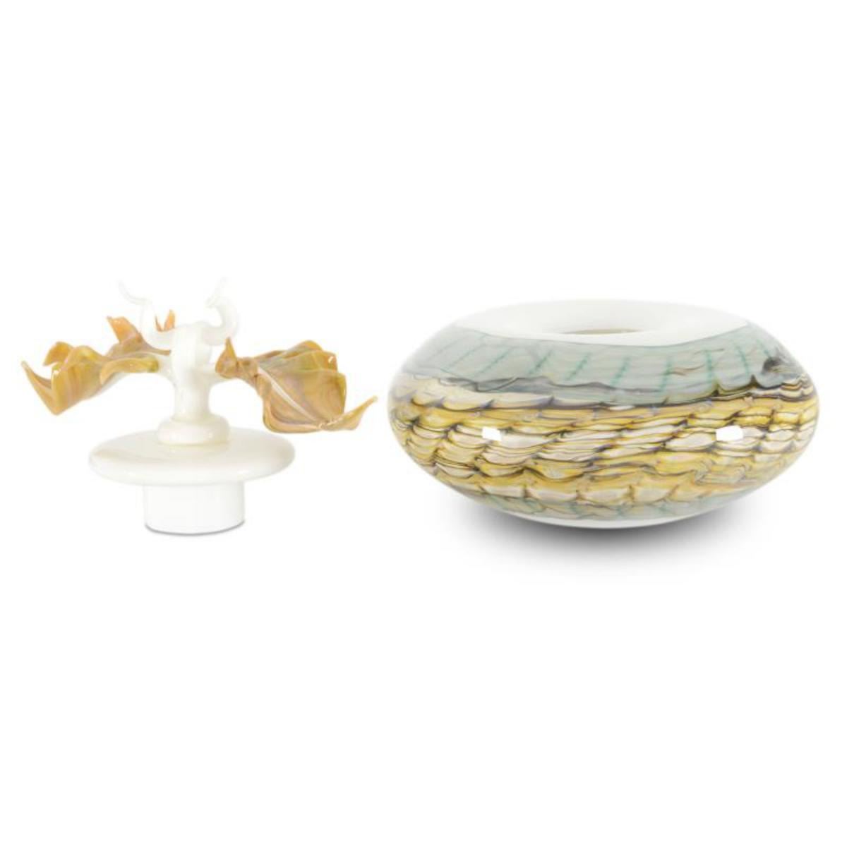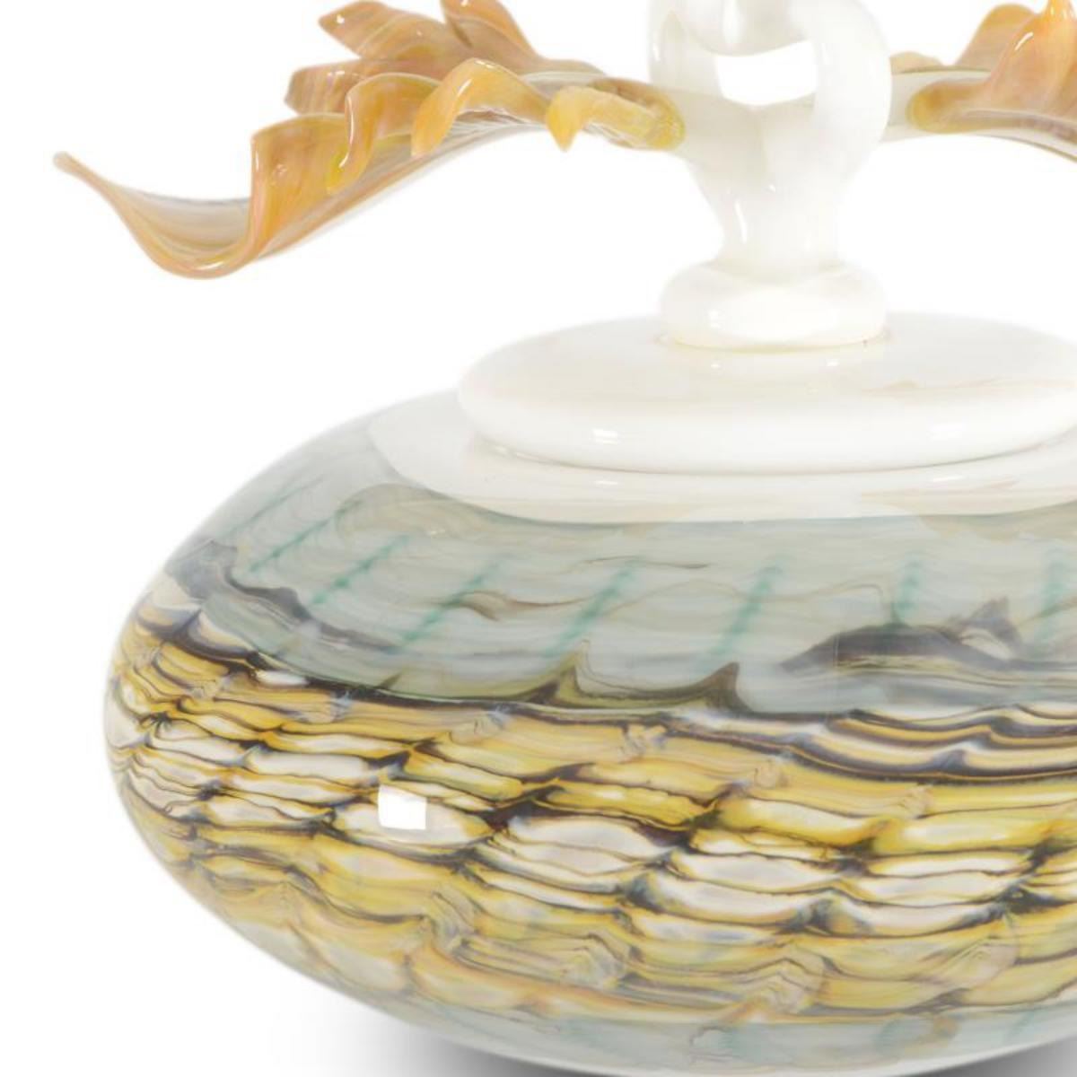 "Large White Opal Covered Bowl with Finial" Hand Blown Glass Sculpture, Hand Signed by GartnerBlade
