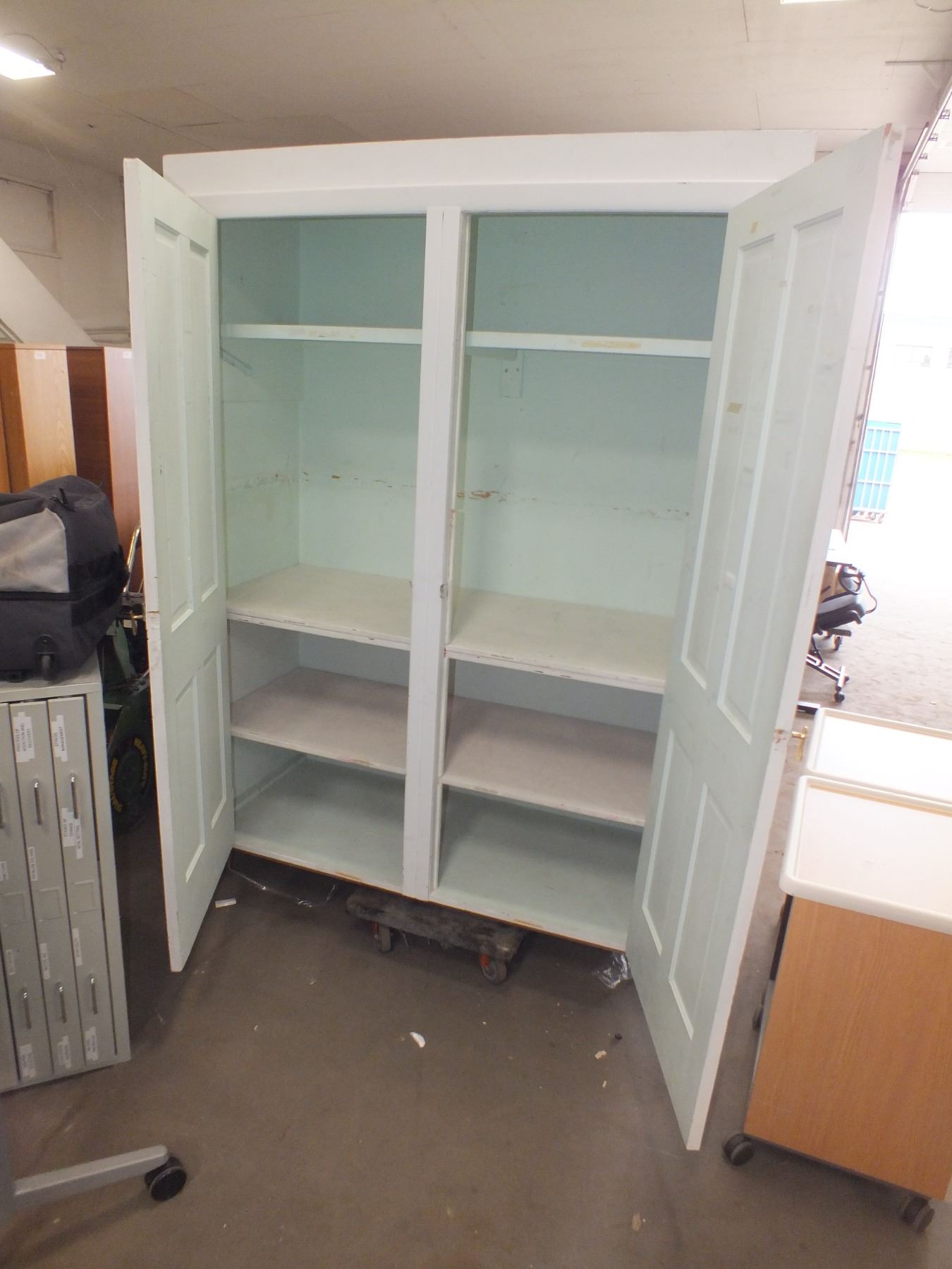 Large White Wooden Storage Cabinet, 61"l 25"w 81"h, would make a great pantry...used