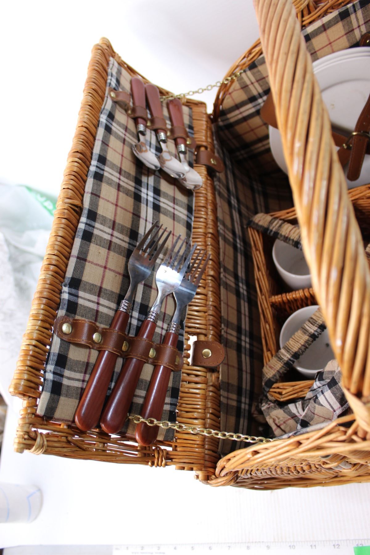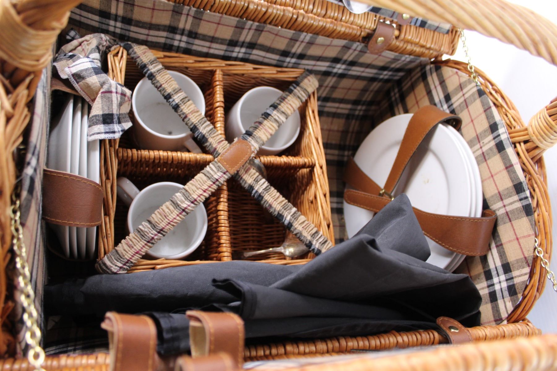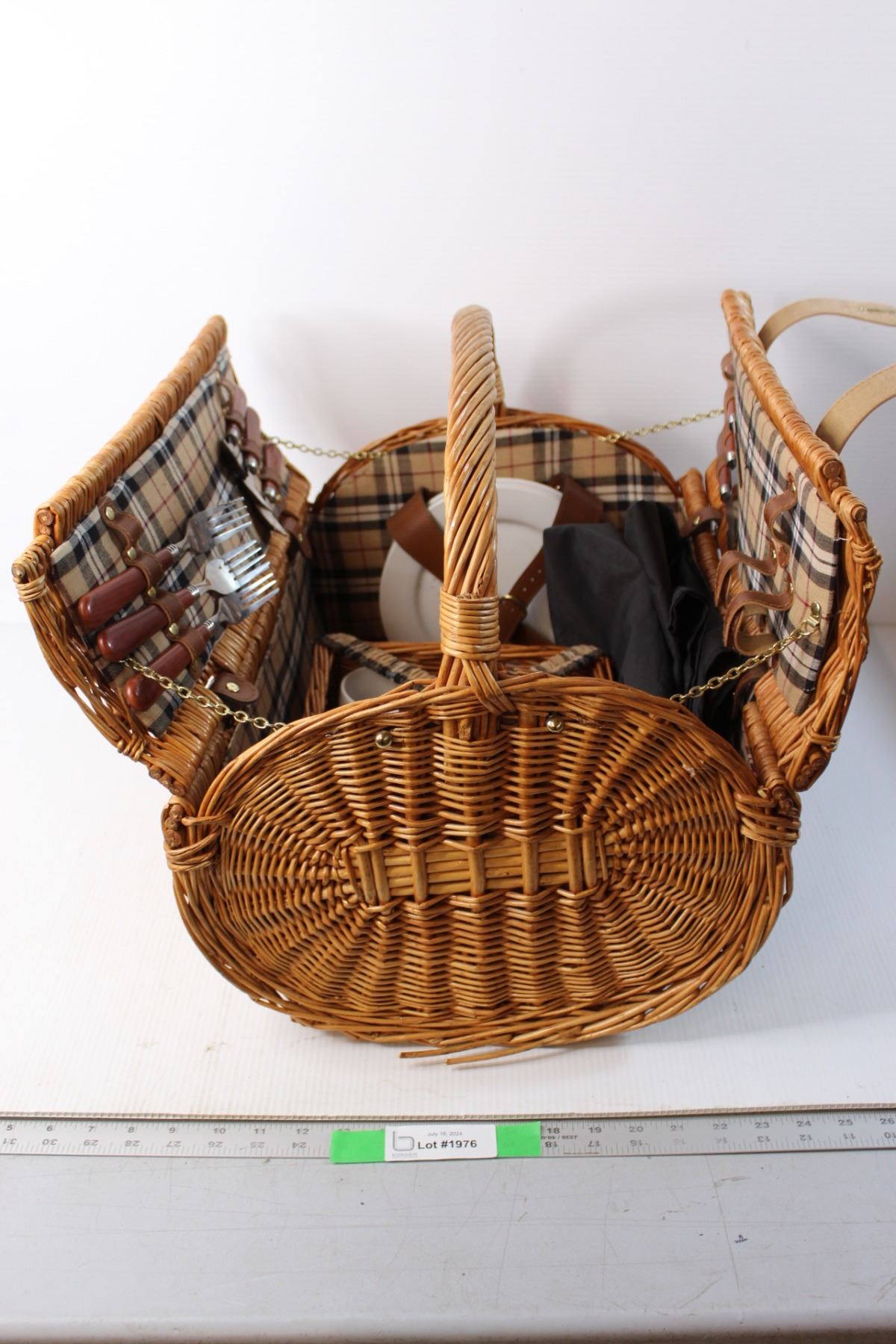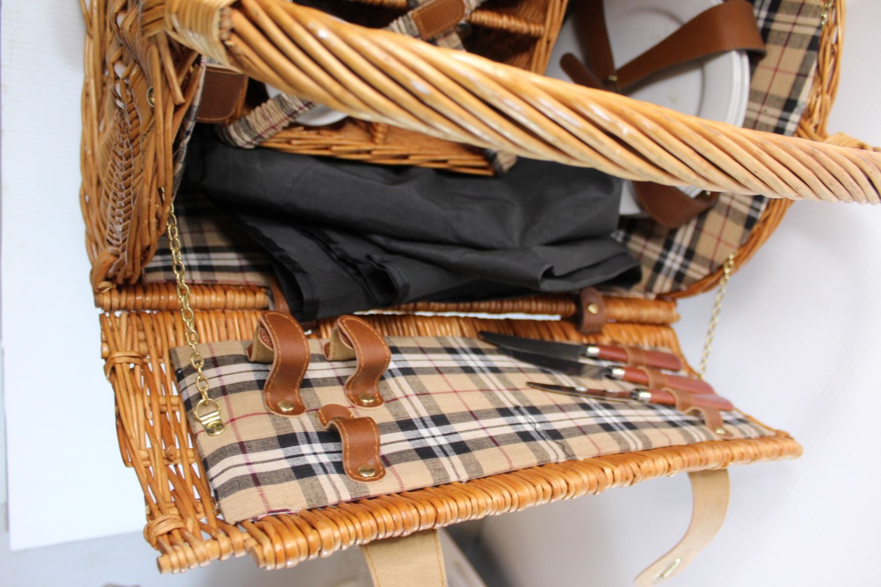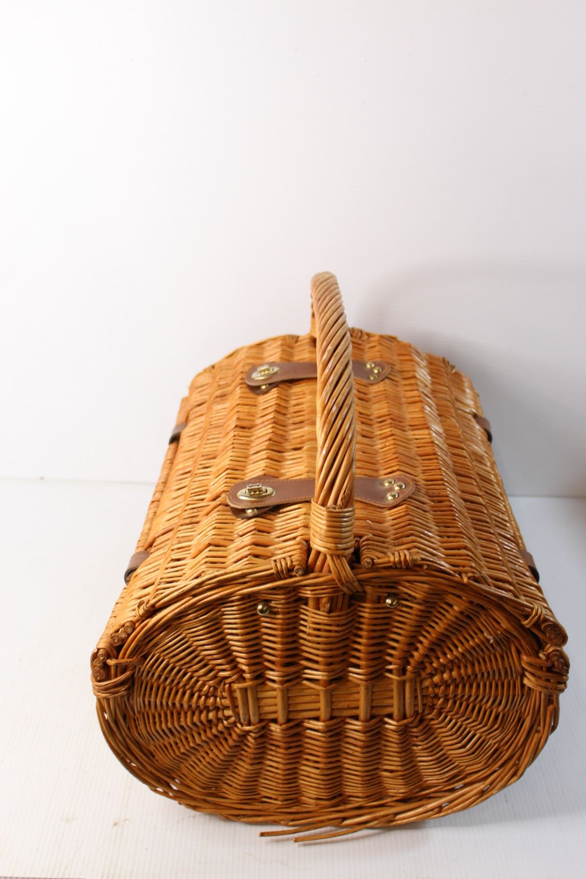 Large Wicker Picnic Basket with Items