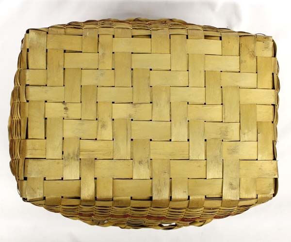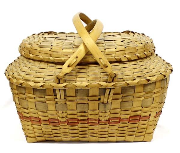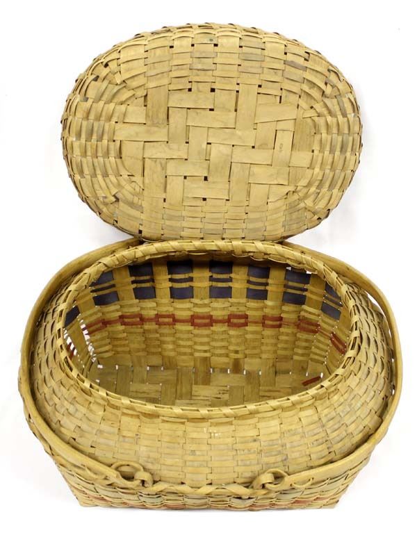 Large Native American Winnebago Lidded Ash Basket, measures 16'' x 20'' x 12'', double handles, 3-toned