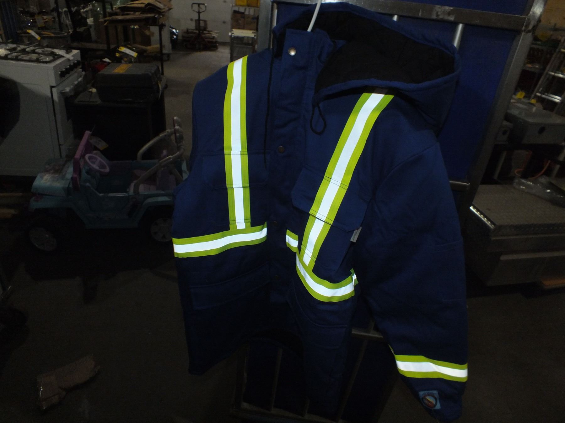 Size Large fire retardant, Reflective Winter Work Coat, Store Return, May Or not have a button missing or a name patch...Like new...used