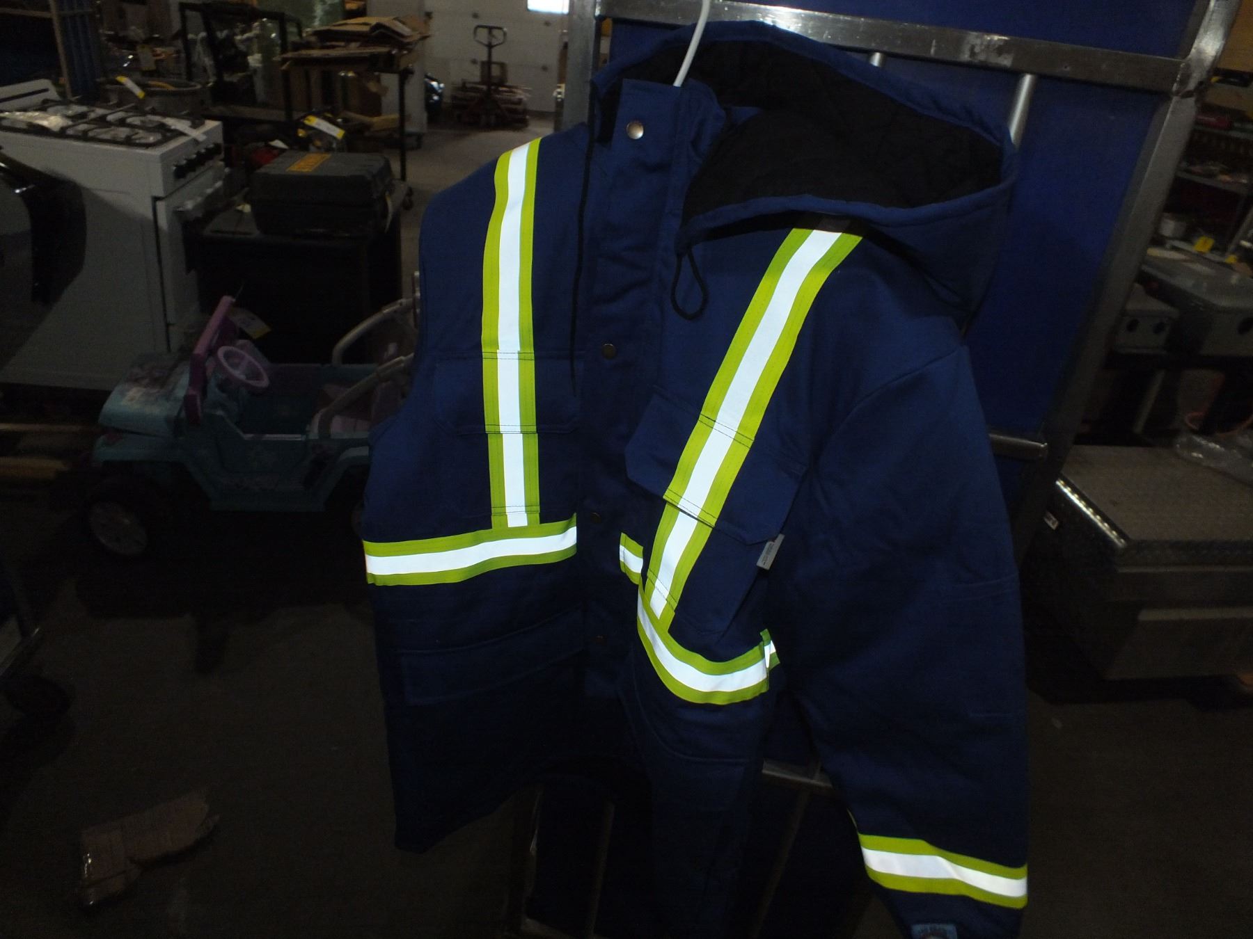 Size Large fire retardant, Reflective Winter Work Coat, Store Return, May Or not have a button missing or a name patch...Like new...used