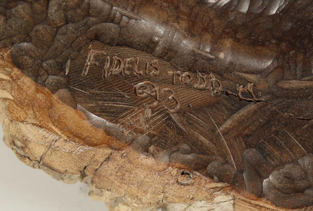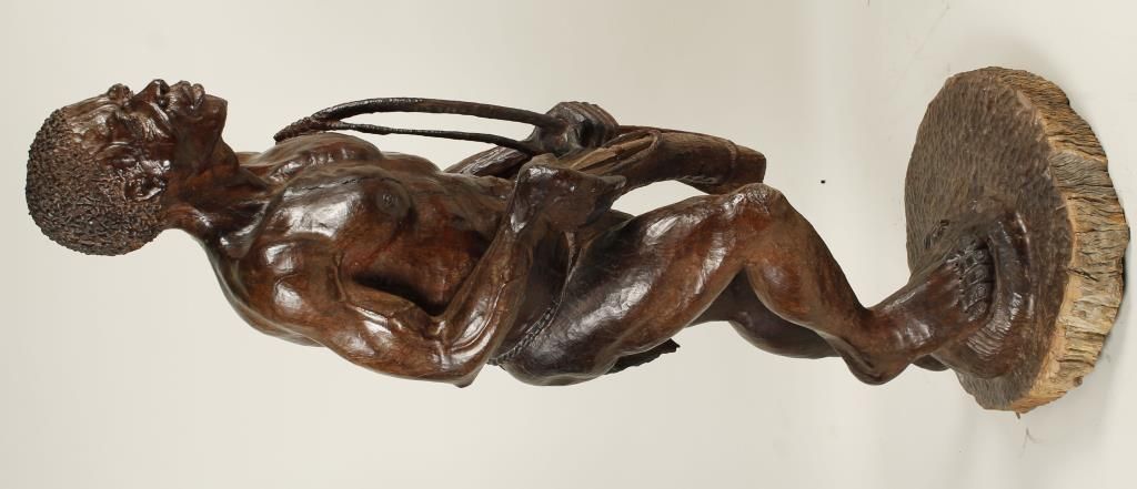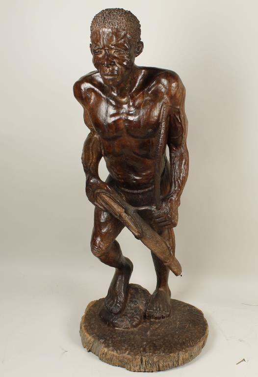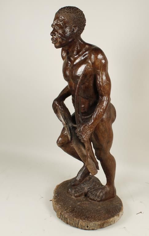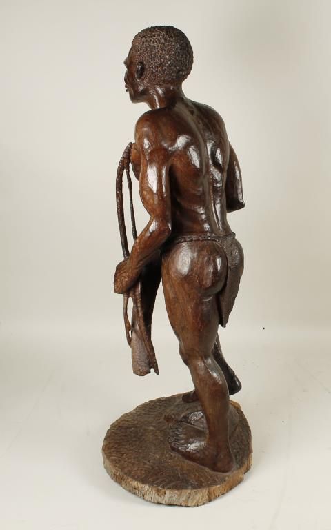 Dated 1993, carved from a single piece of wood, measures 49"Hx17". "Tony DaCosta Collection" of noted hunter and owner of Safari Headquarters Ltd. from Carson City, NV.