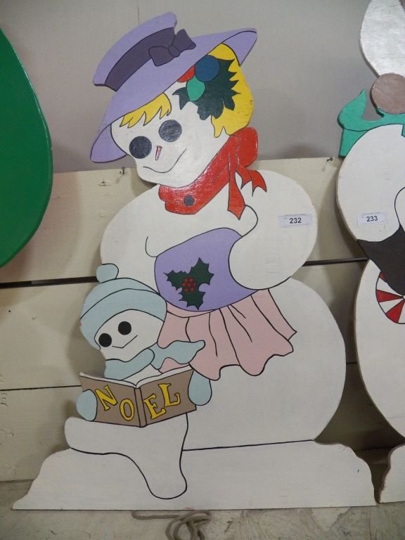Large Wood Snow Lady W/Child Approx. 30" x 42"