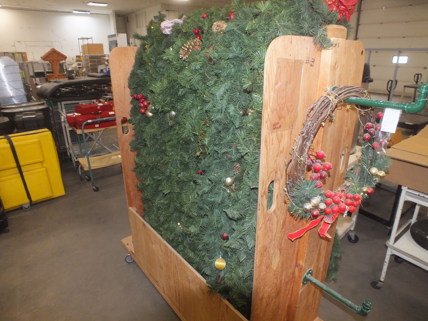 Large Wooden Storage Cart On Wheels w/ Christmas Garland...used
