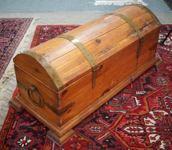 Large Wooden Storage Trunk, Must Be Picked Up, measures 53''L x 21''H, metal hardware and embellishments