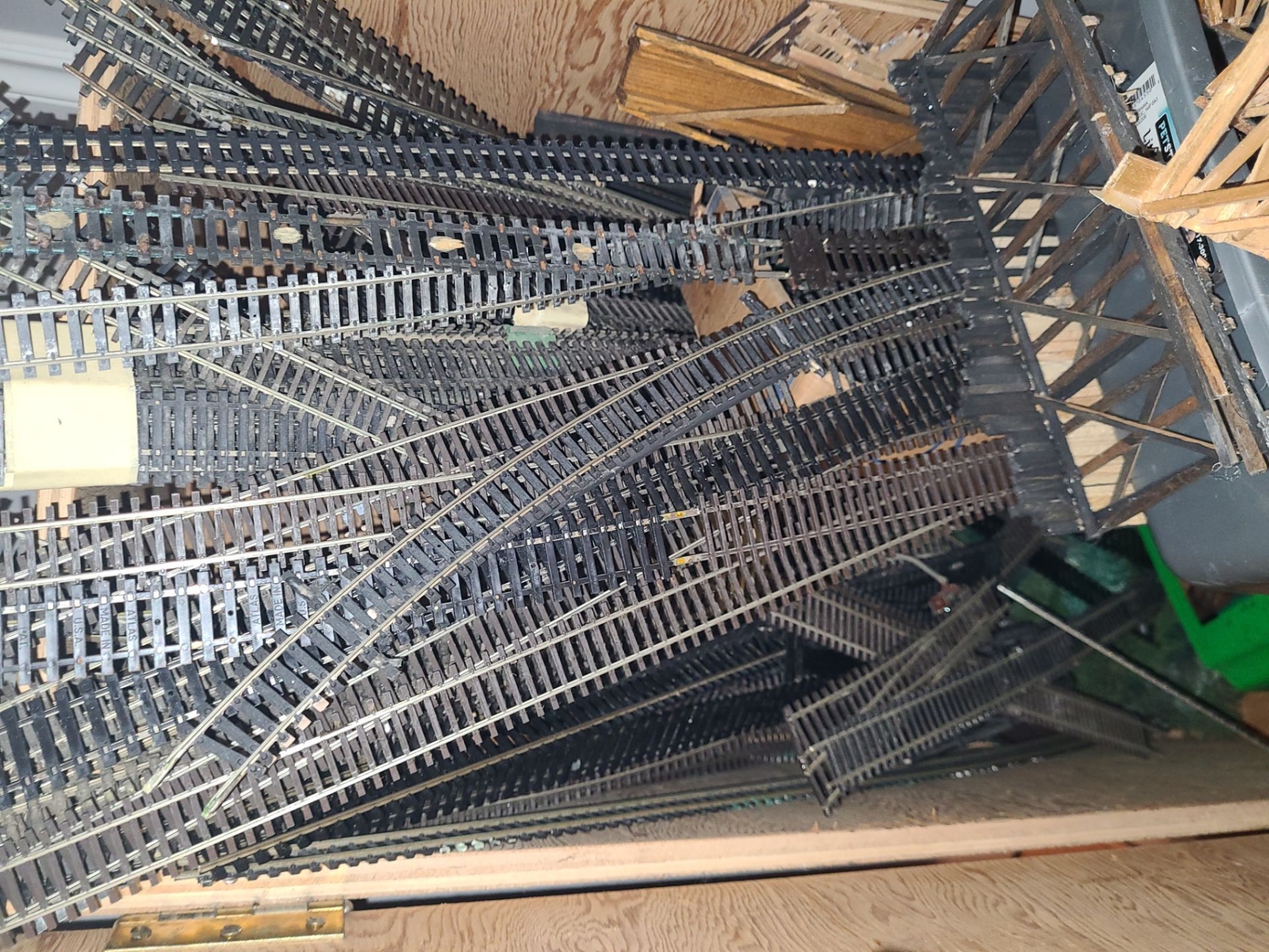 Large Wooden Utility Chest 36w, 18 d, 13 h. Extra Tracks & Trees