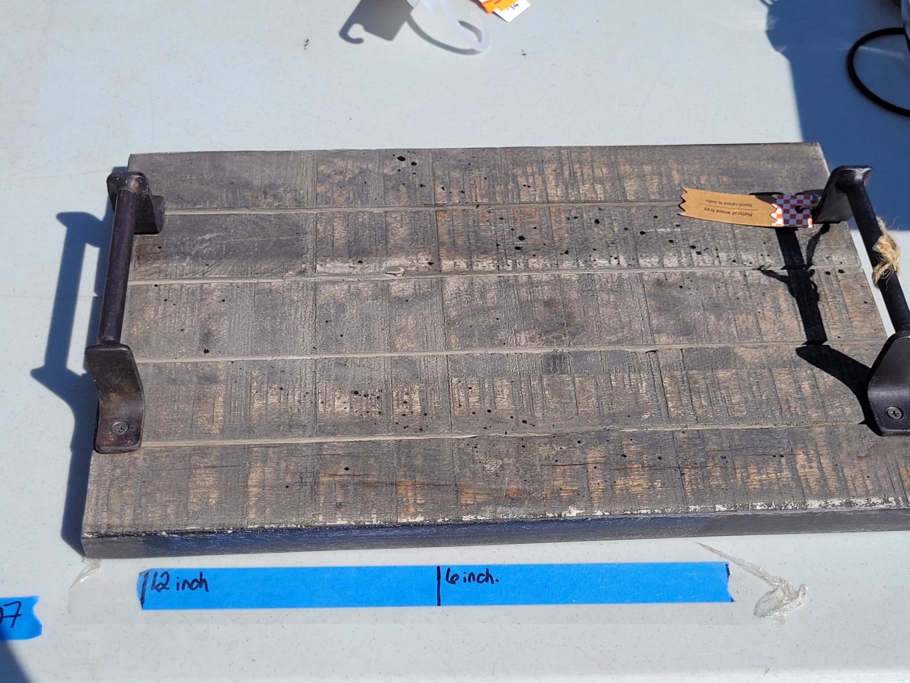 Large Wooden w/ Cast Iron Handles Serving Board or Decor