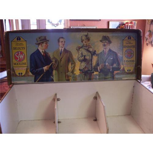 </font></strong>Great display piece with wonderful graphics.I would guess this is from the 1930s.Made of a heavy cardboard material.One tear on left side of the lid but you don't notice it that much as it is an even tear that does not seperate from the cover.Measures 29 1/2" long,10 1/4" tall and 11 1/4" deep.Three sections for display when front folds down.</font>