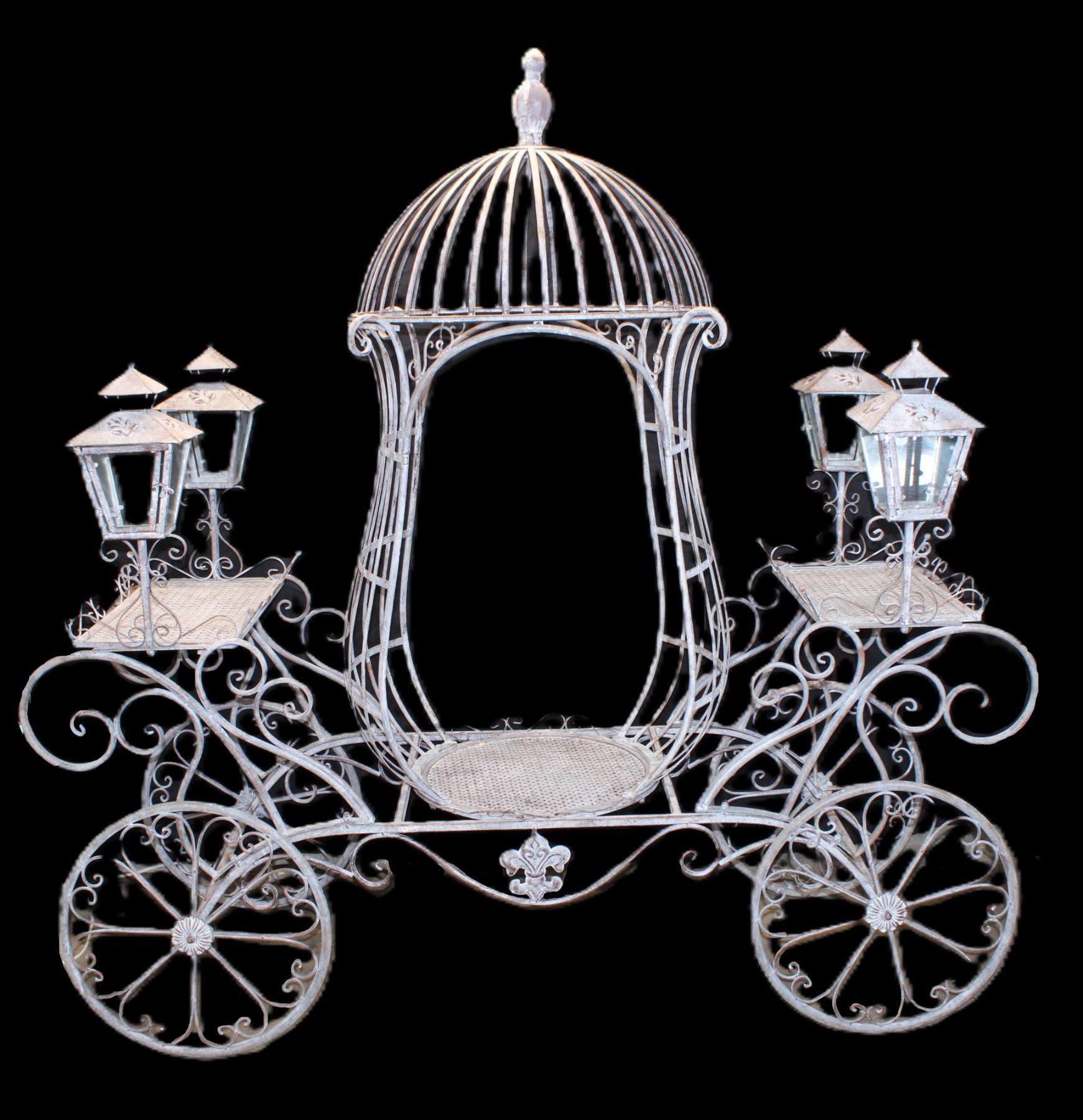 Large Yard Art Metal Carriage That Rolls- 70" X 73" X 23"