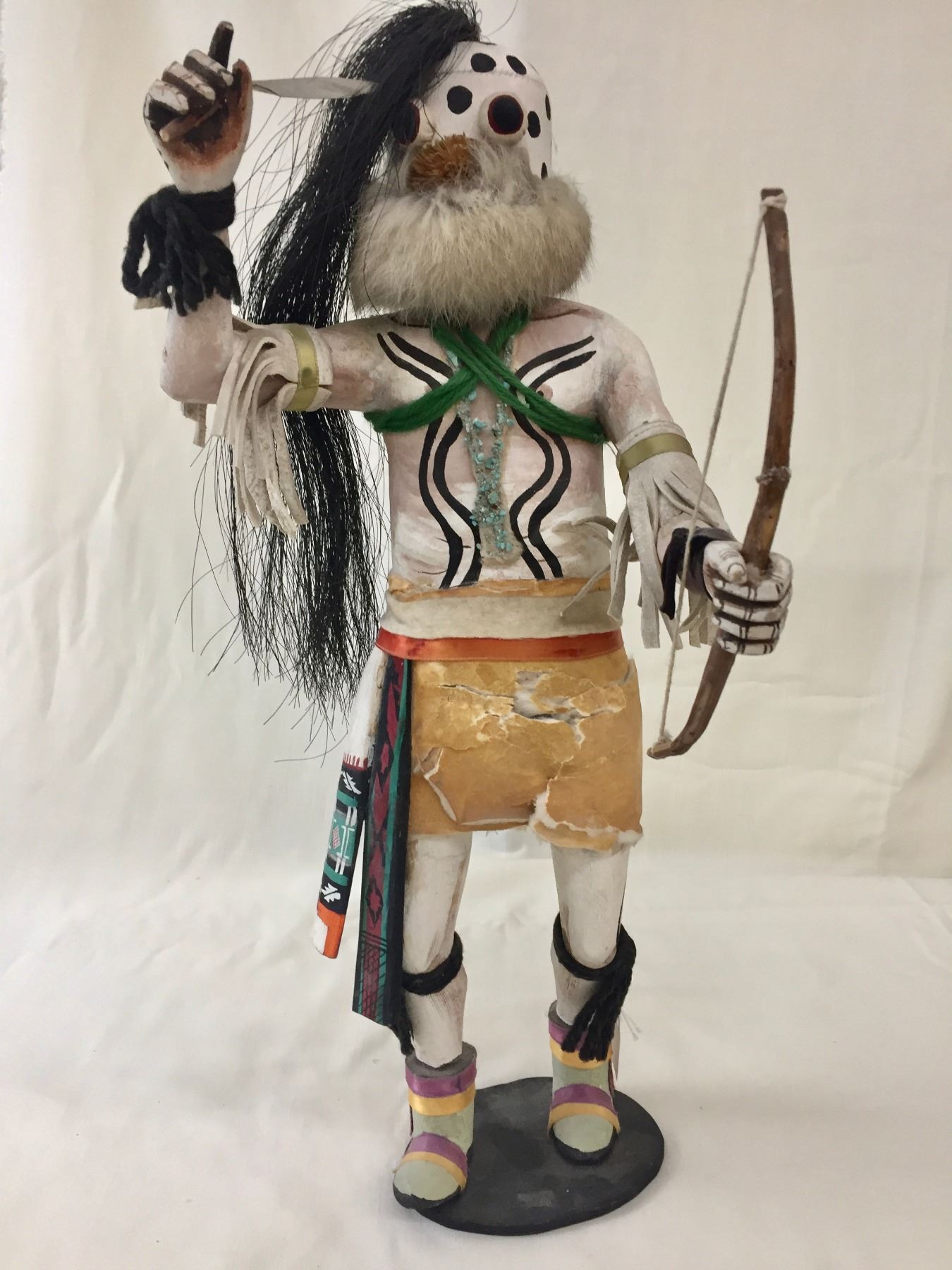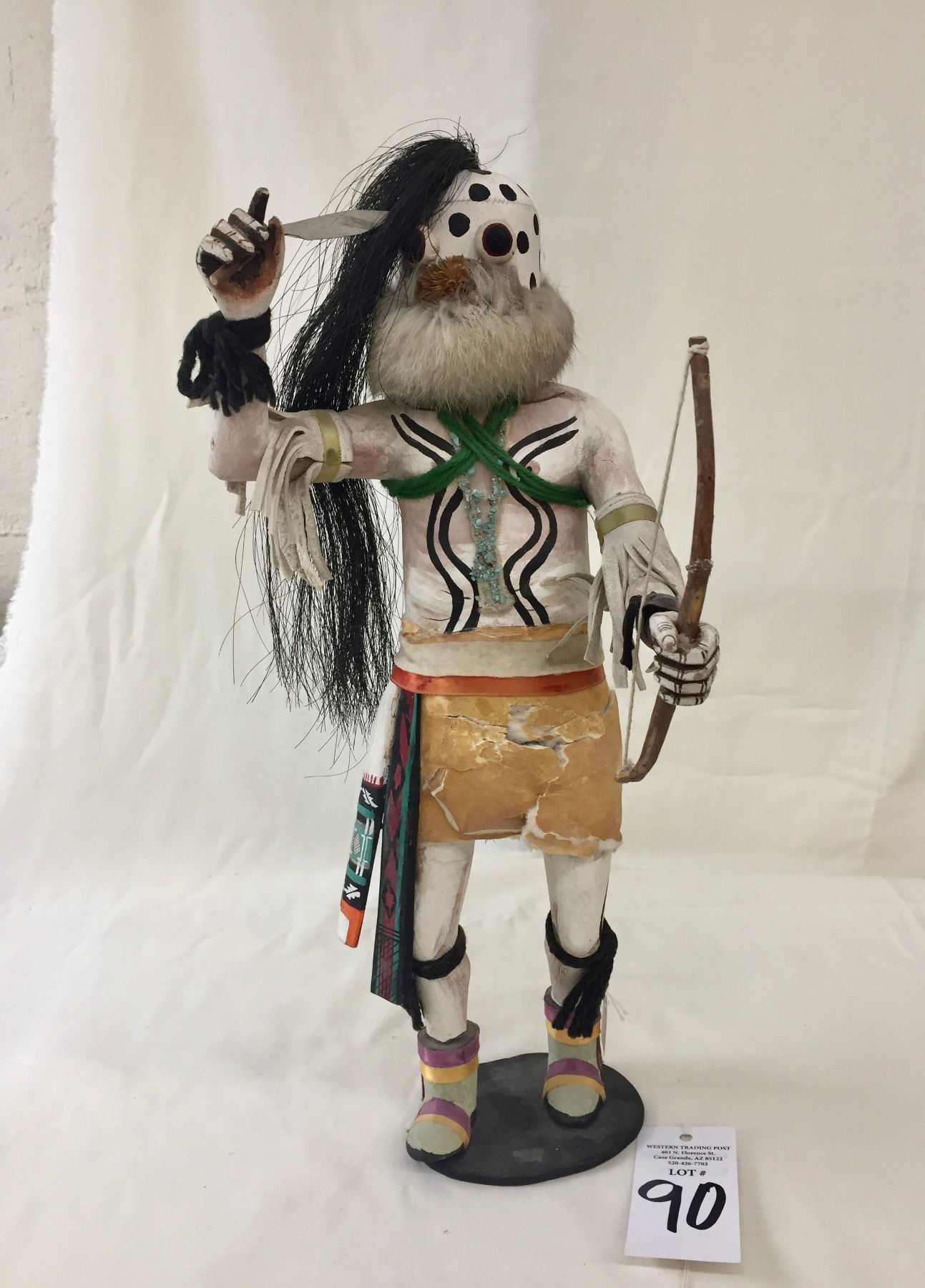 Description: Offered for sale in this lot is a very large, vintage, hand crafted Zuni Warrior Kachina created by known artist, Duane Dishta. Maker: Duane Dishta. Approx. Age: Circa 1960s. Size: 10”w x 19-1/2” tall. Condition: Pretty good for its age, normal wear expected and does show signs of age. Please look closely at the pictures - they are an important part of our description. Shipping: There will be a $15 handling / packaging fee for shipping this lot. The actual cost of postage will be added on top of that.