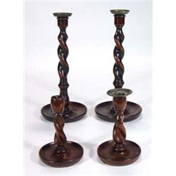 Large and small pair of circular based oak barleytwist candlesticks…