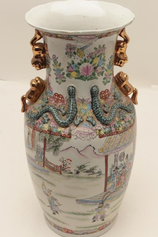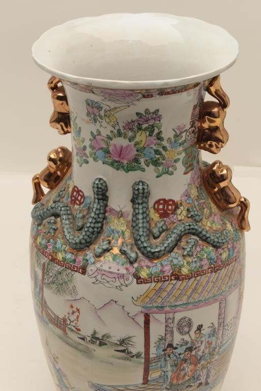 Large antique Chinese floor vase, approximately 27” in height, very good condition and finely accomplished. Est.: $400-$800.