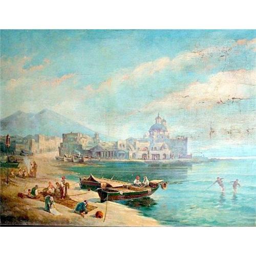 Large View of Naples , Napoli, measuring without the frame , 40 inches H and 55 inches wide, it is unsigned ,but a good work. needs some cleaning, considering the conditions it is about 1850.