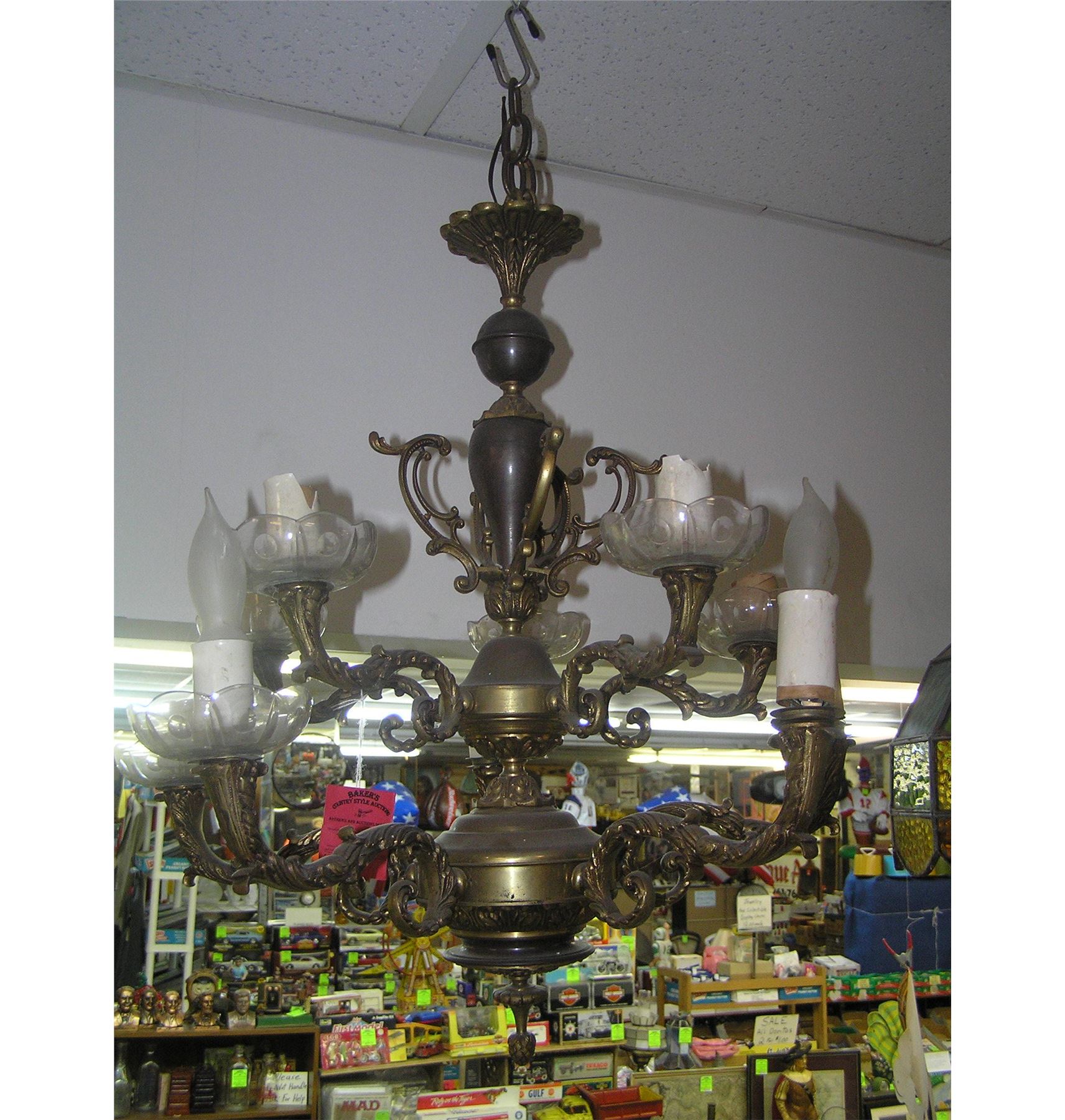 Large antique brass and crystal chandelier est. value $200.00-$300.00