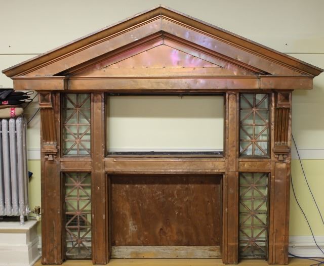 from an early Wibaux MT bank, cool architectural element 85” tall X 99” long X 22” deep. Est. 400-800