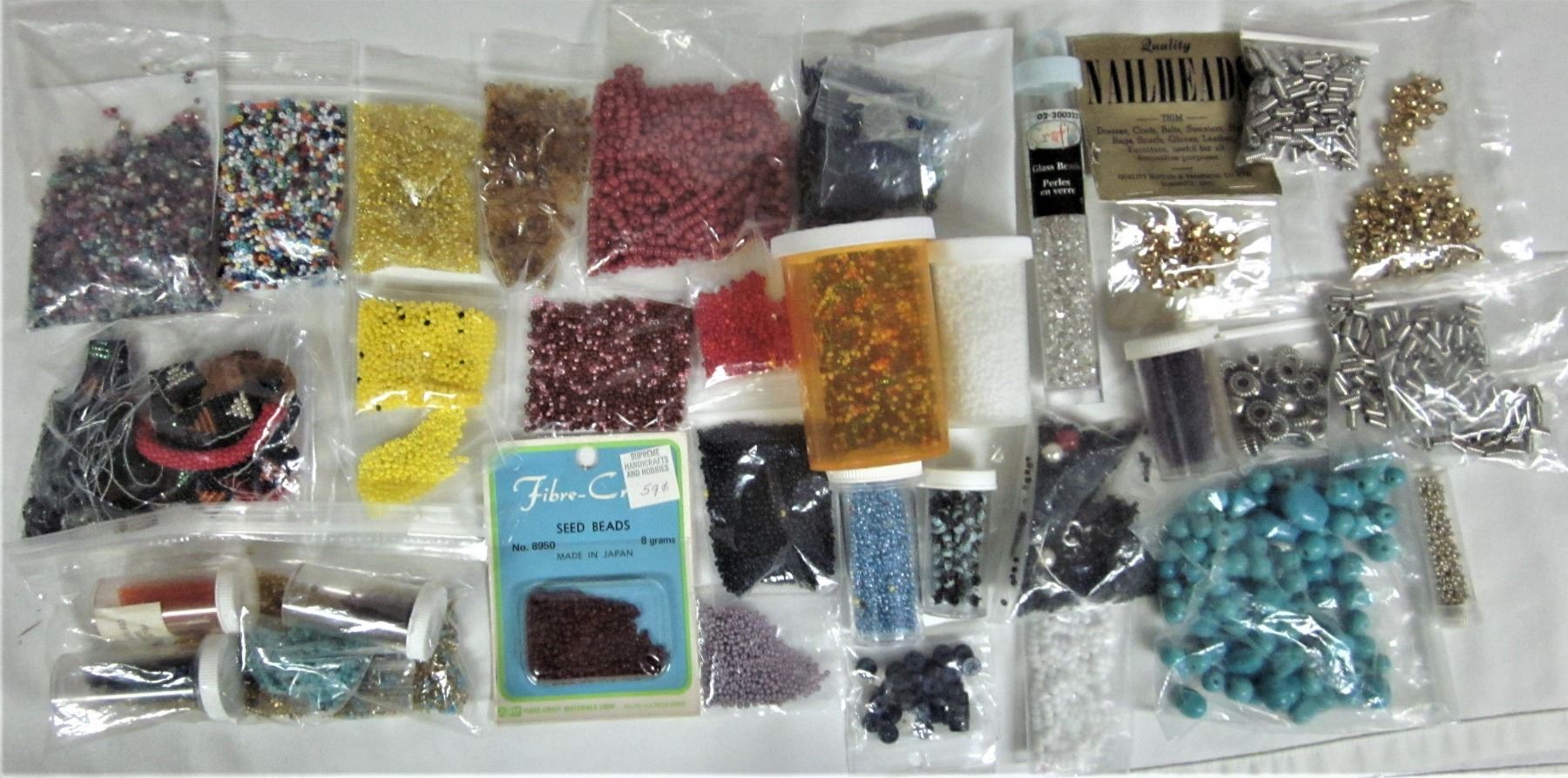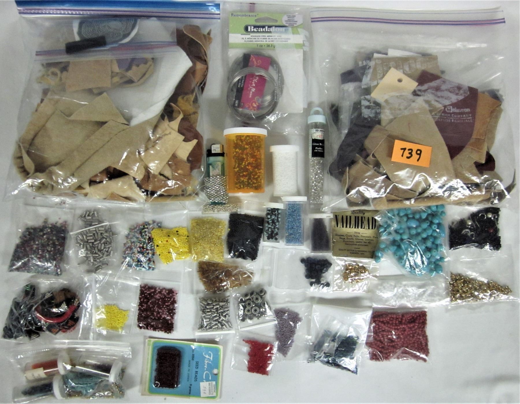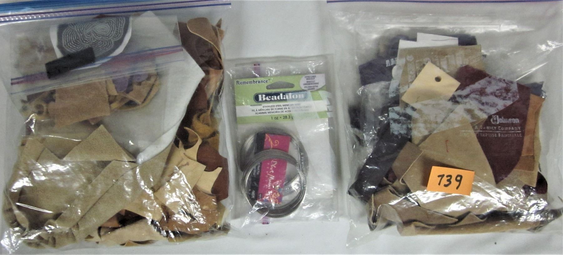 Large assorted beading supplies, scrap leather & assorted beads