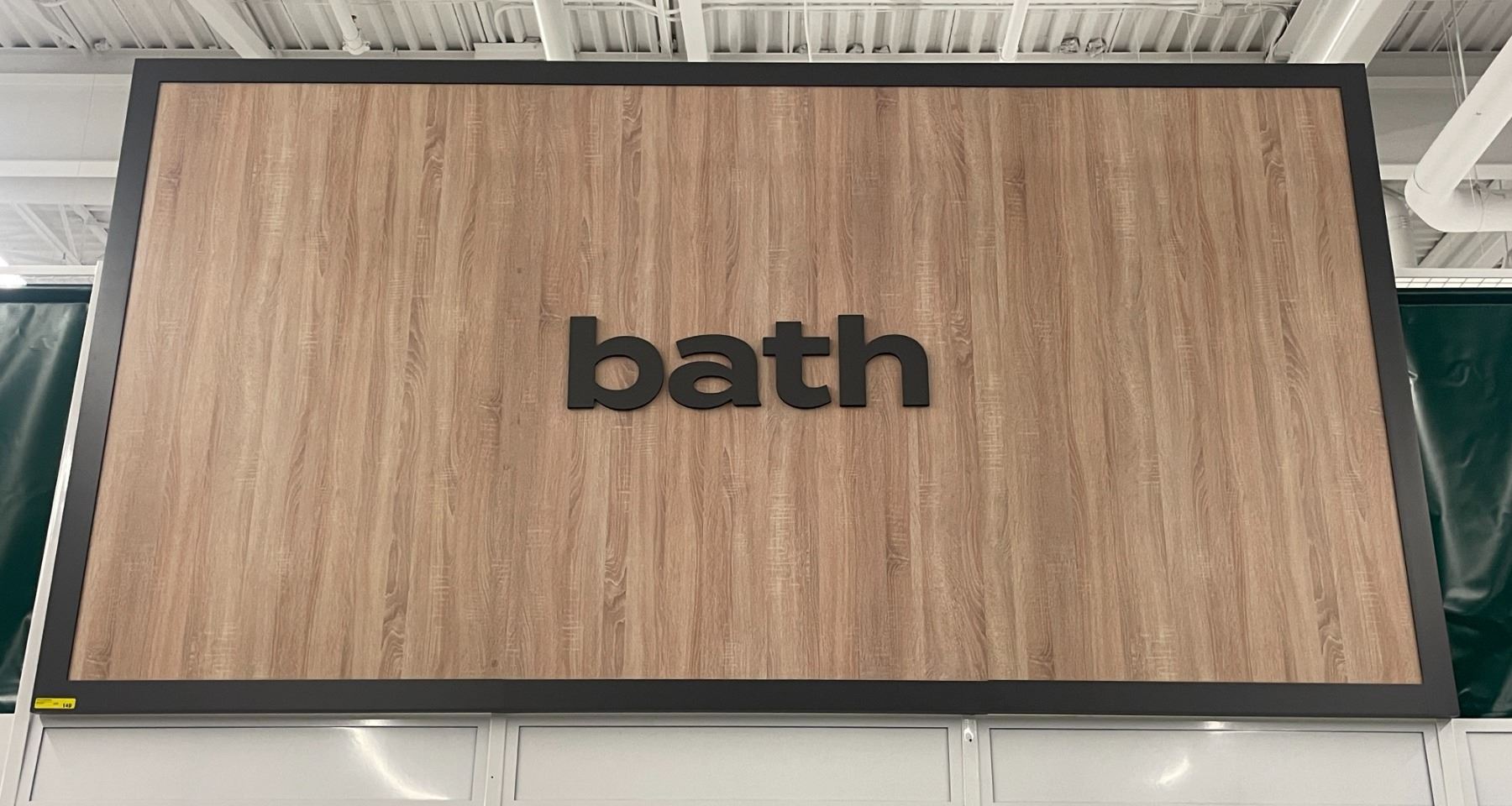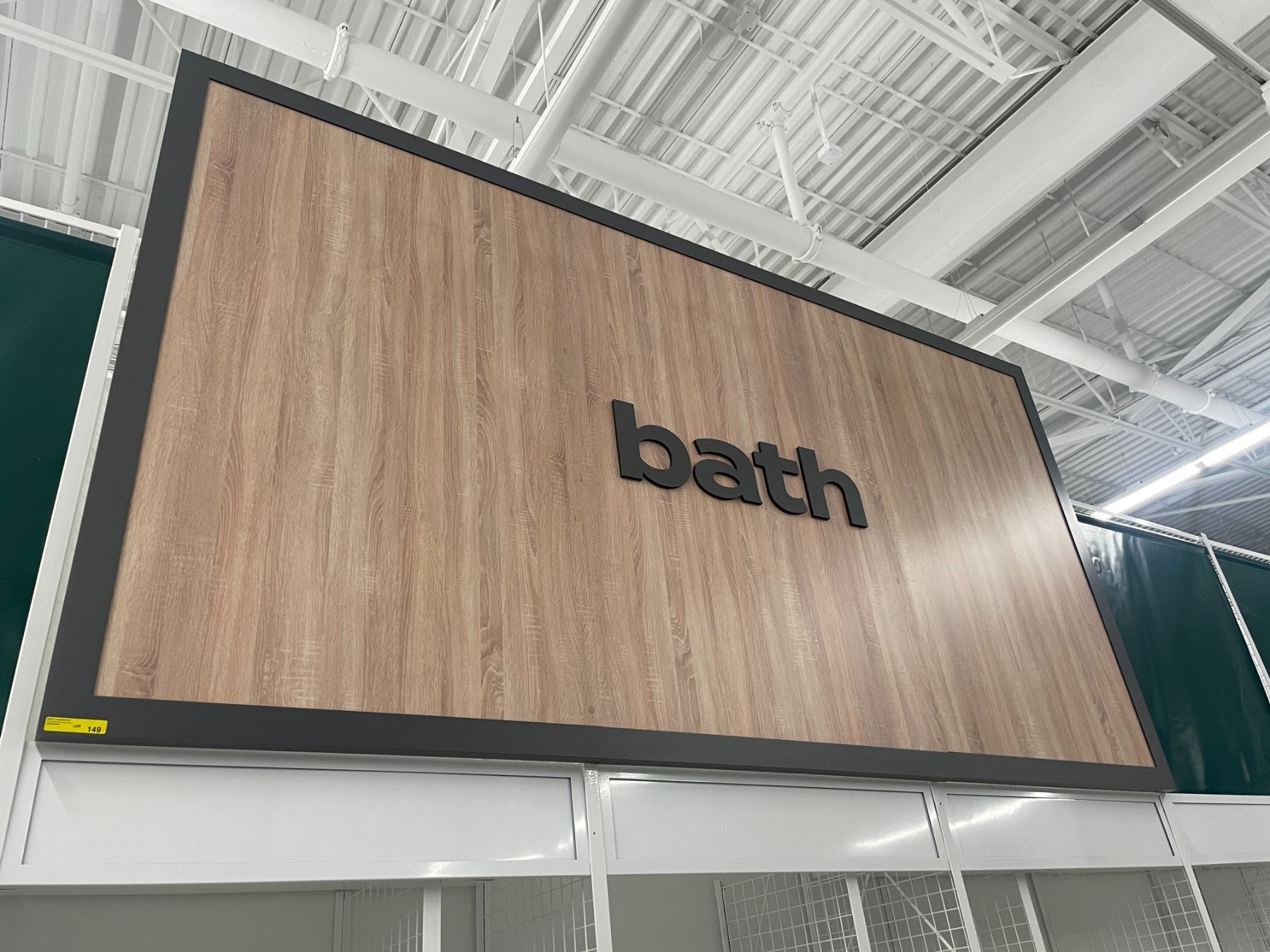 Large bath store sign (approx. 13ft W 76in H 2in D) BIDDERS ARE RESPONSIBLE FOR ALL COSTS ASSOCIATED WITH PICKUP OF THEIR LOTS INCLUDING BUT NOT LIMITED TO RENTAL OF EQUIPMENT, FORKLIFTS, LABOUR, TRUCKING, TOOLS ETC.