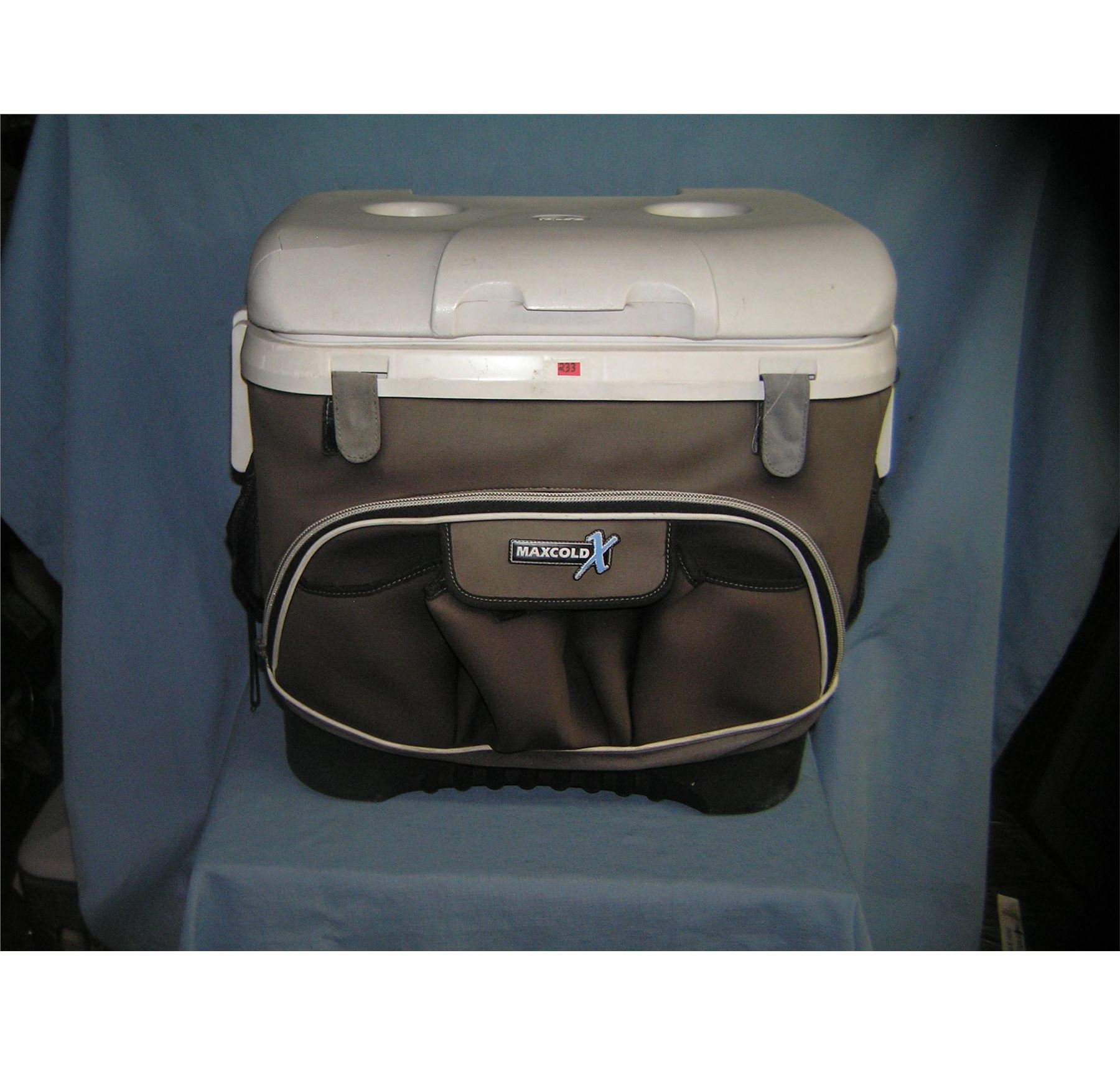 Large beach or picnic cooler by Igloo with front and side storage pouches est. value $40.00-$50.00