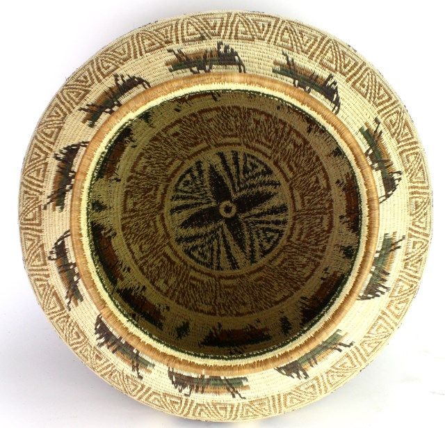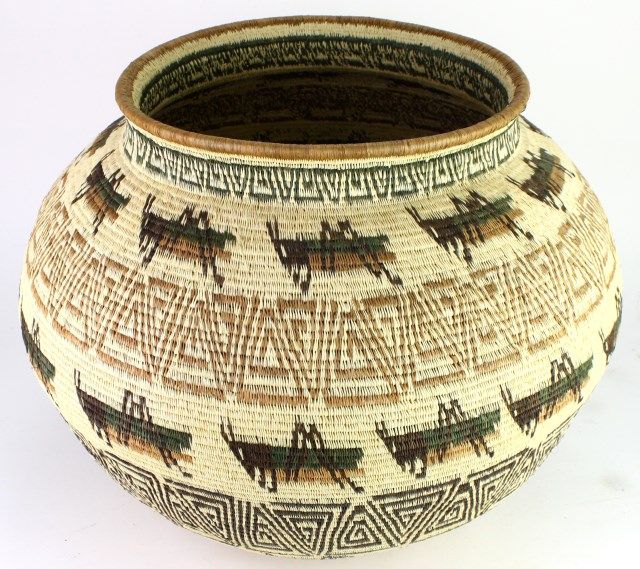 with grasshopper motif in fine contemporary condition. Seri basket, they weave some of the finest baskets in the world and are an almost extinct Mexican tribe, very nicely accomplished, 14" tall X 18" wide. Est. 850-1600