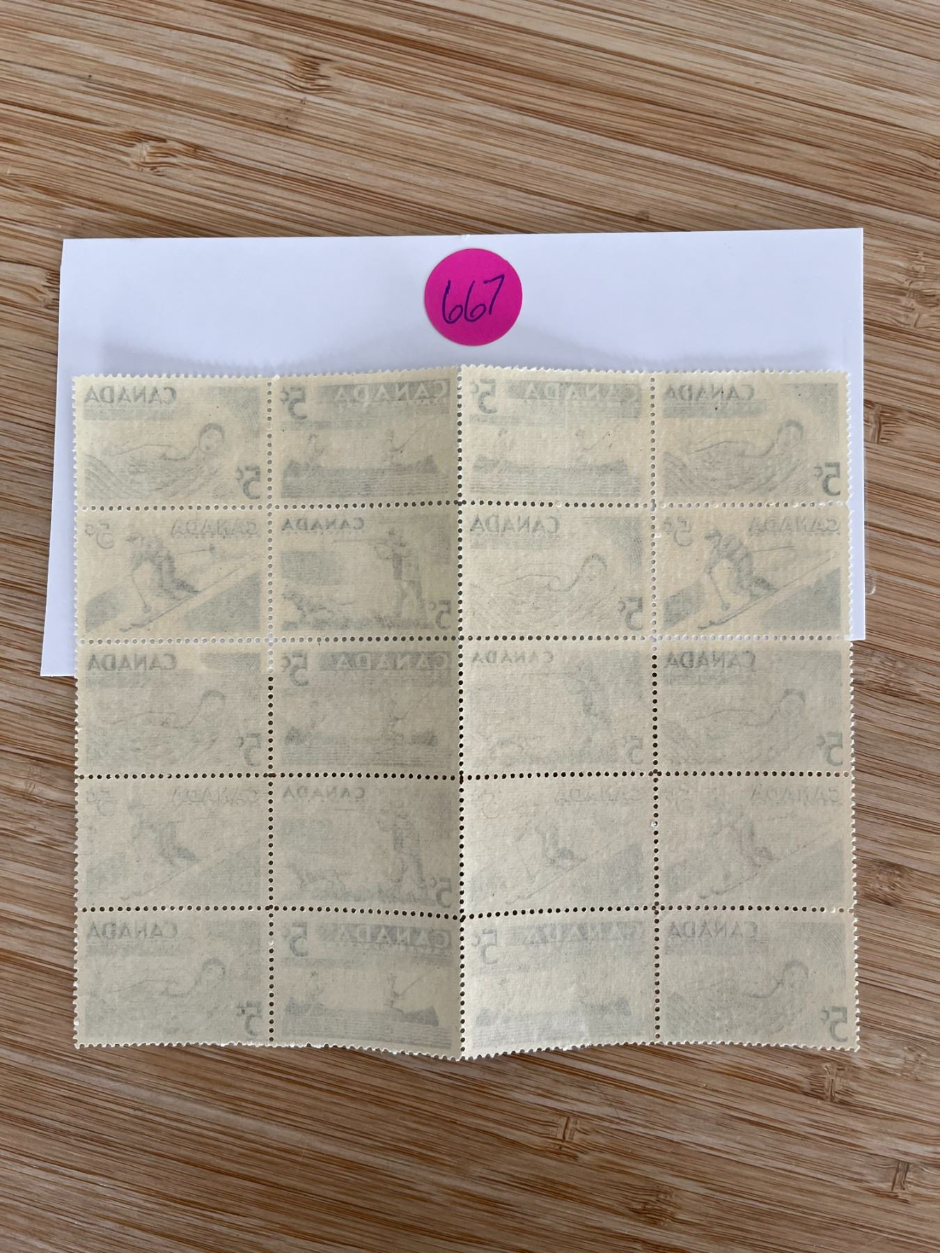 Large block of 20 mint Canada Outdoors 5 cent stamps