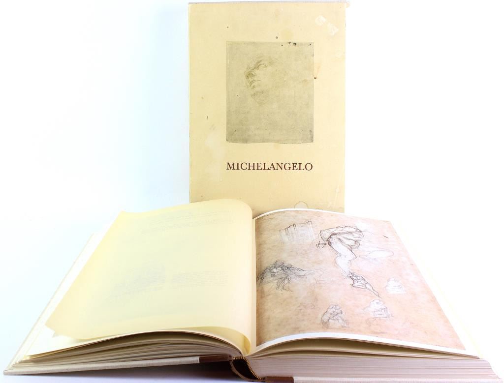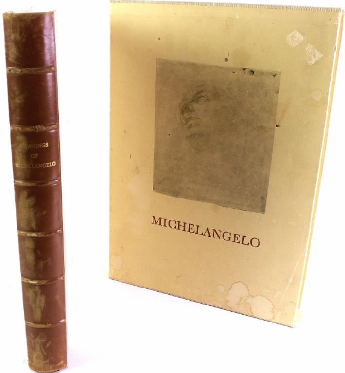 Large book "Drawings of Michelangelo" with full illustrations, leather spine and original sleeve, impressive book, some wear to the leather spine but good otherwise, 18" overall. with full illustrations, leather spine and original sleeve, impressive book, some wear to the leather spine but good otherwise, 18" overall.