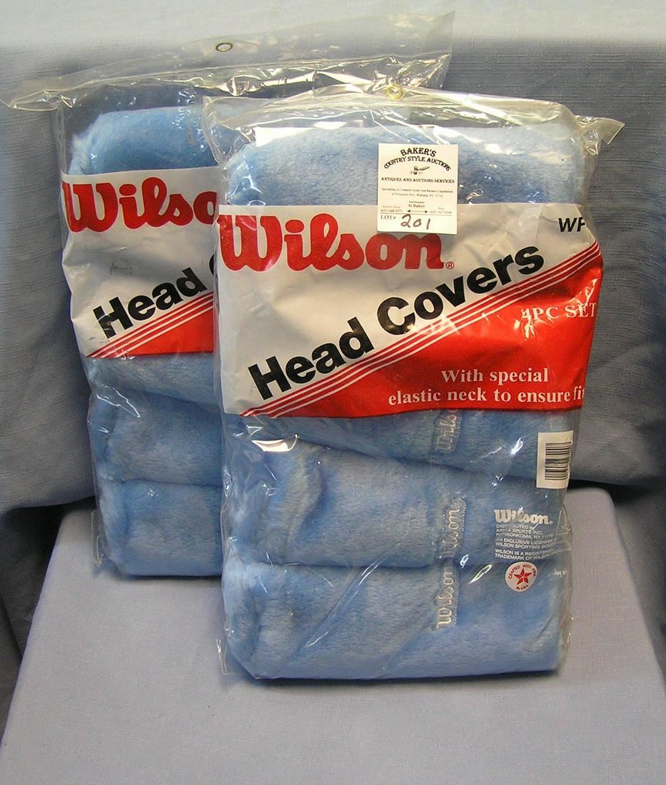 Large box of vintage Wilson 4 piece golfing head covers $30.00-$40.00