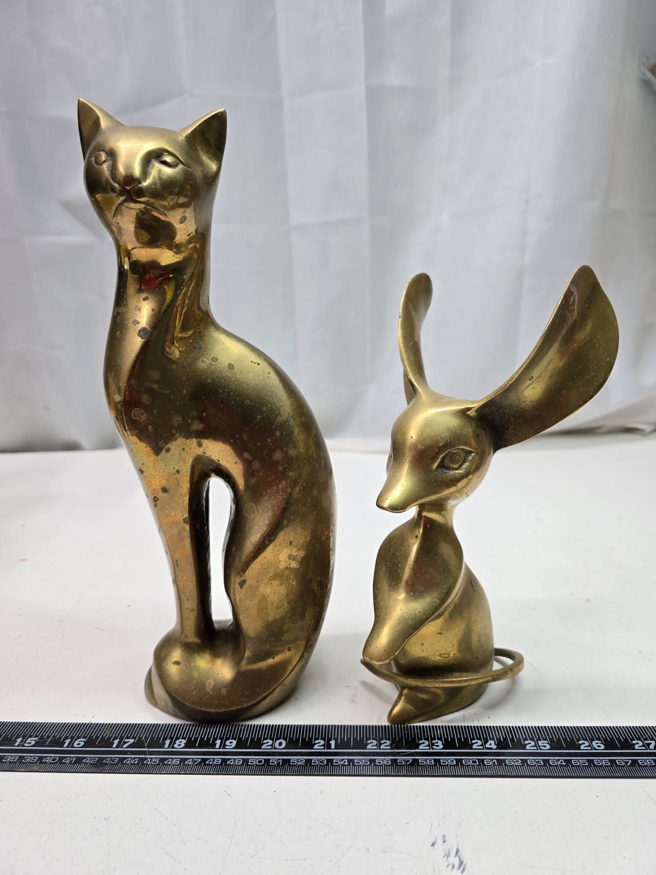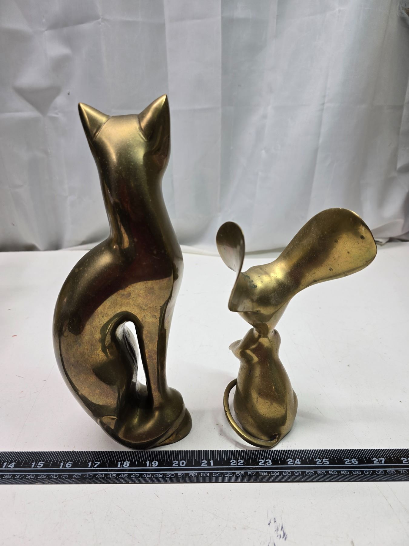 Large brass cat and mouse figurines - 12" & 6"H