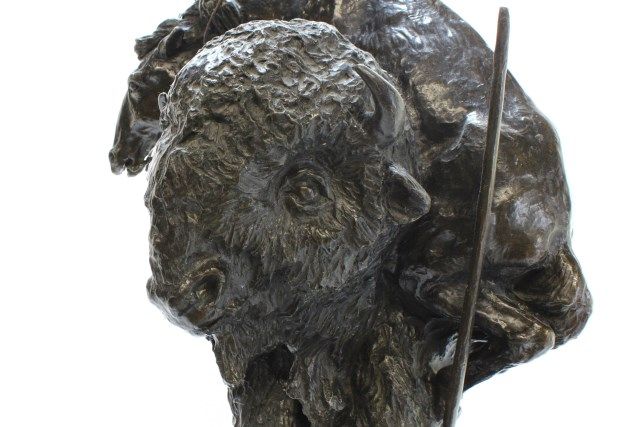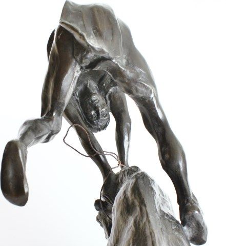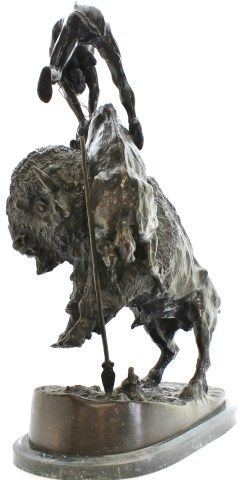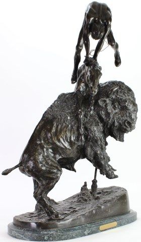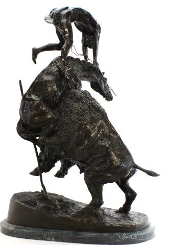 Remington, quality restrike with good patina, good quality detail on marble base, 31" tall X 22" wide. Est. 1000-1800