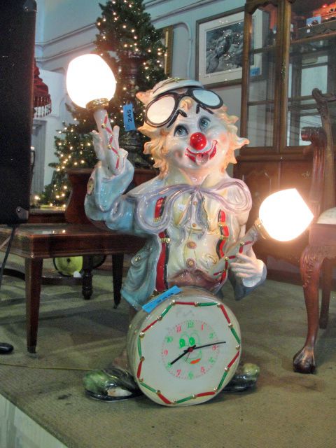 Large ceramic clown clock and light