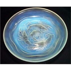 Large circular Etling opalescent shallow bowl, moulded with lobsters, signed G. Beal and Etling m…
