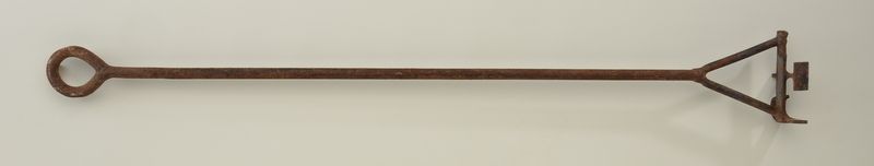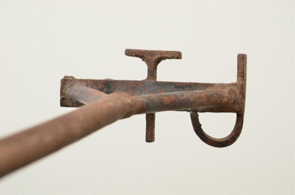 Large classic old branding iron approx. 50” long with initials “TJ”; from an old estate. Est.: $50-$75.