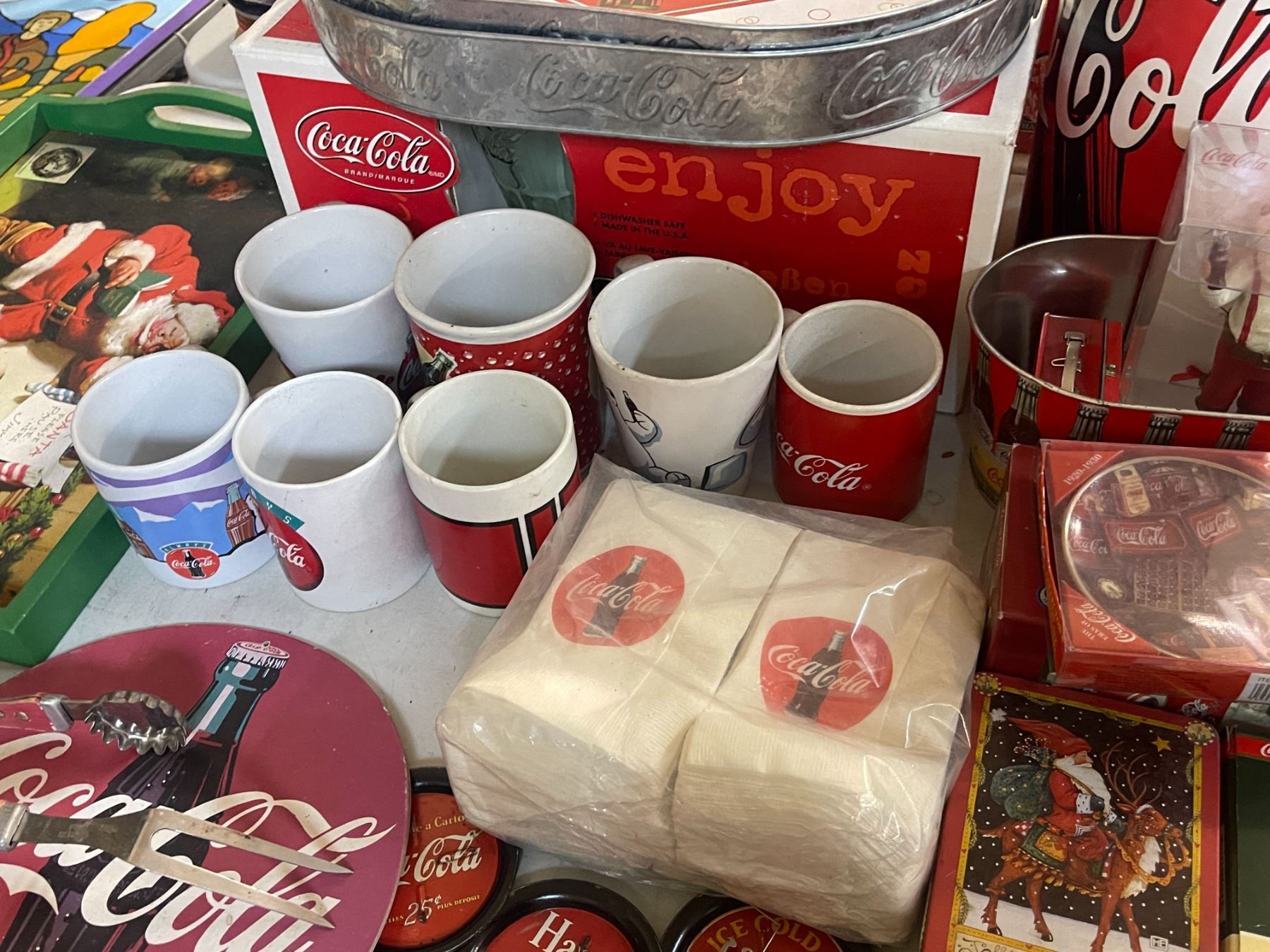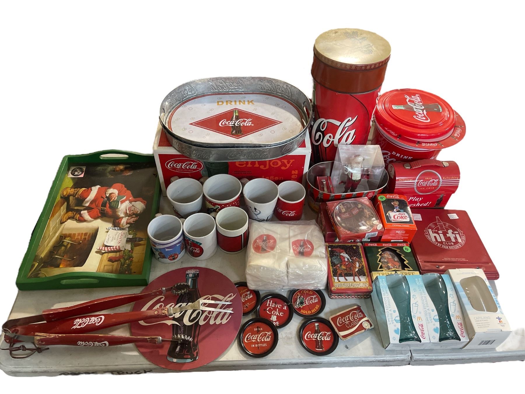 Large collection of Coca Cola memorabilia - trays/ cups/ tins/ ornaments