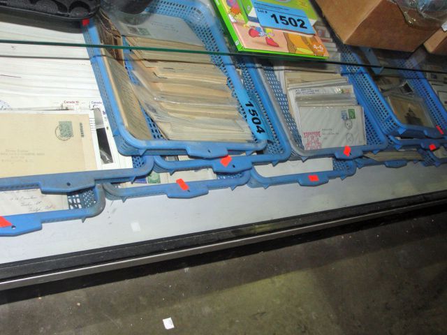 first day stamps etc. 12 blue baskets full