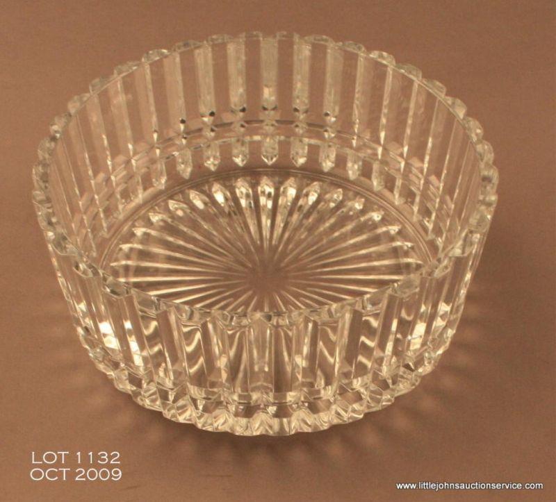 Large cut glass bowl 9" in diameter by 4" tall, unsigned. Est. $50-$75.