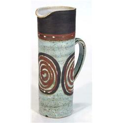 Large cylindrical Briglin pottery jug, decorated with a brown abstract pattern, marks to base, 26…